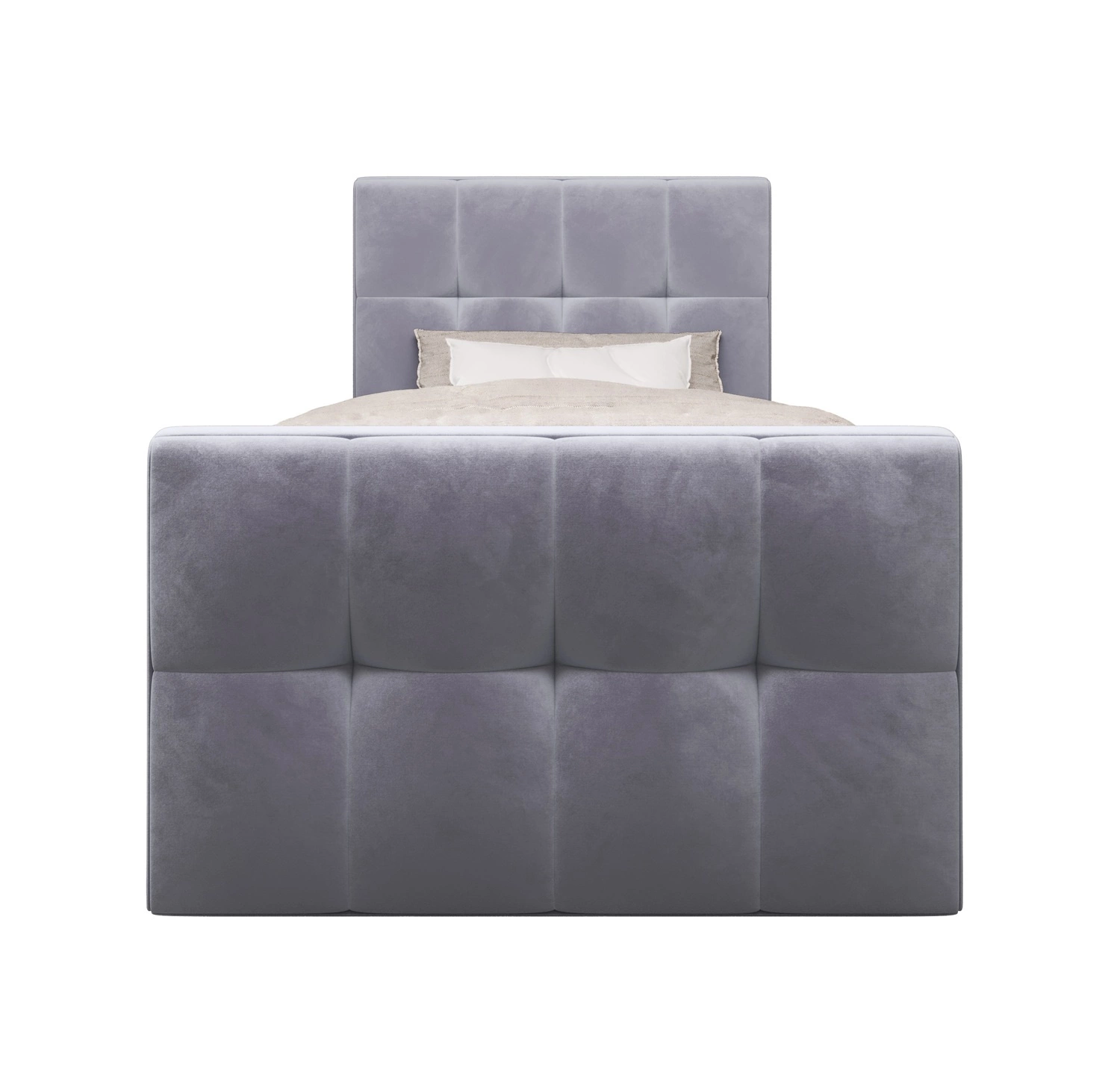 Boxspringbett Manhattan 100x200 hellblau Bett im modernen skandinavischen Stil mit gepolstertem Kopf- und Fußteil Bett mit Staukasten
