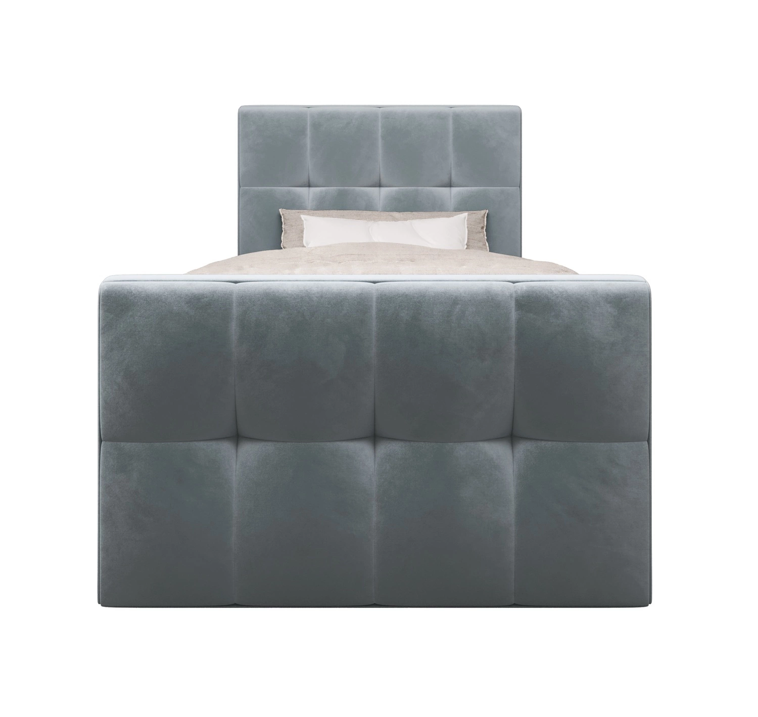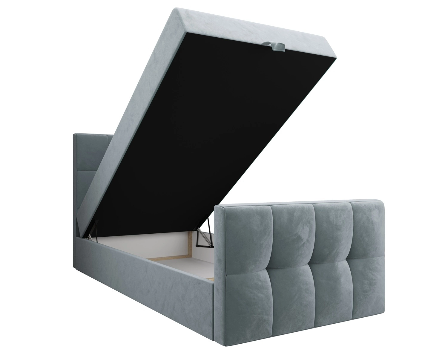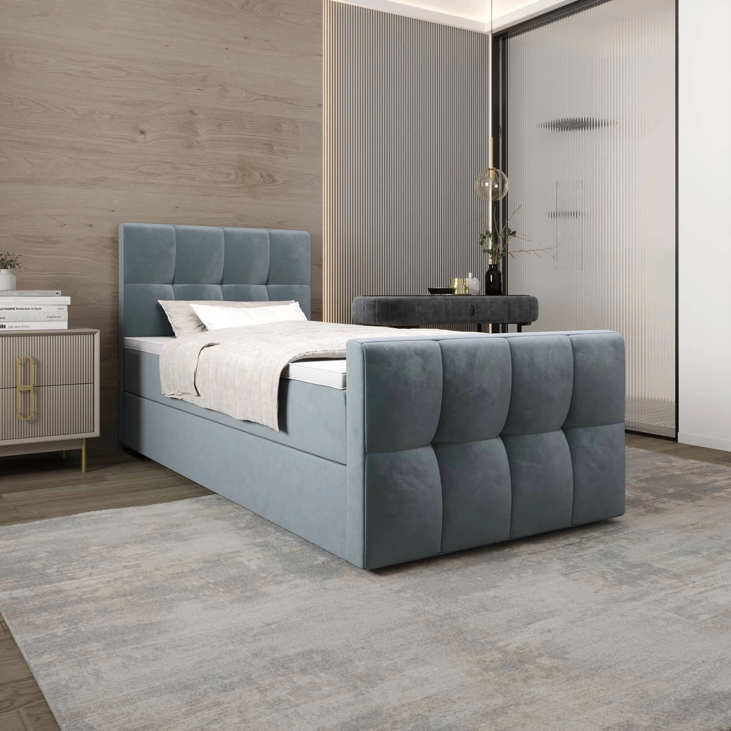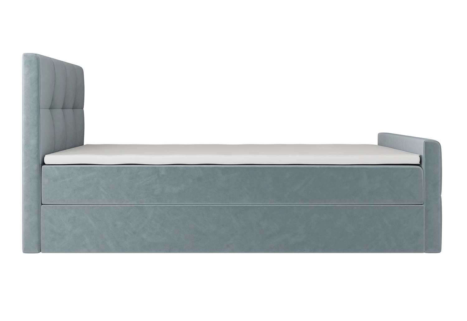 Boxspringbett Manhattan 120x200 türkis im modernen skandinavischen Stil mit gepolstertem Kopfteil und Fußteil Bett mit Staukasten