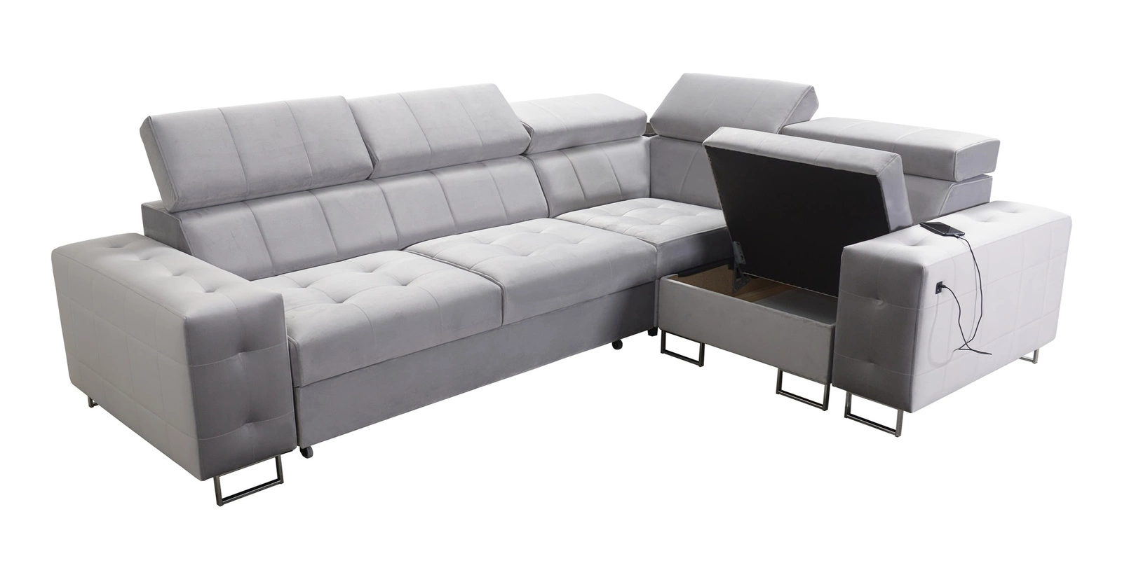Die Extras dieses Möbelstücks, die alle Nutzer schätzen werden, sind der Bettzeugbehälter, die Schlaffunktion, die verstellbaren Kopfstützen und die USB-Ladebuchse.