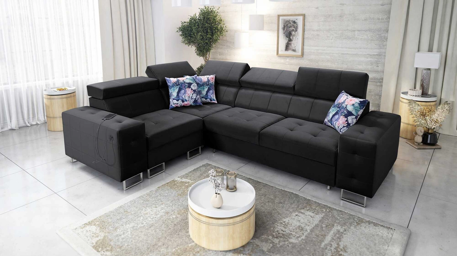Hampton Ecksofa II in Schwarz mit verstellbaren Kopfstützen ist ein elegantes Möbelstück, das sich perfekt in jede Einrichtung Ihres Hauses einfügt.
