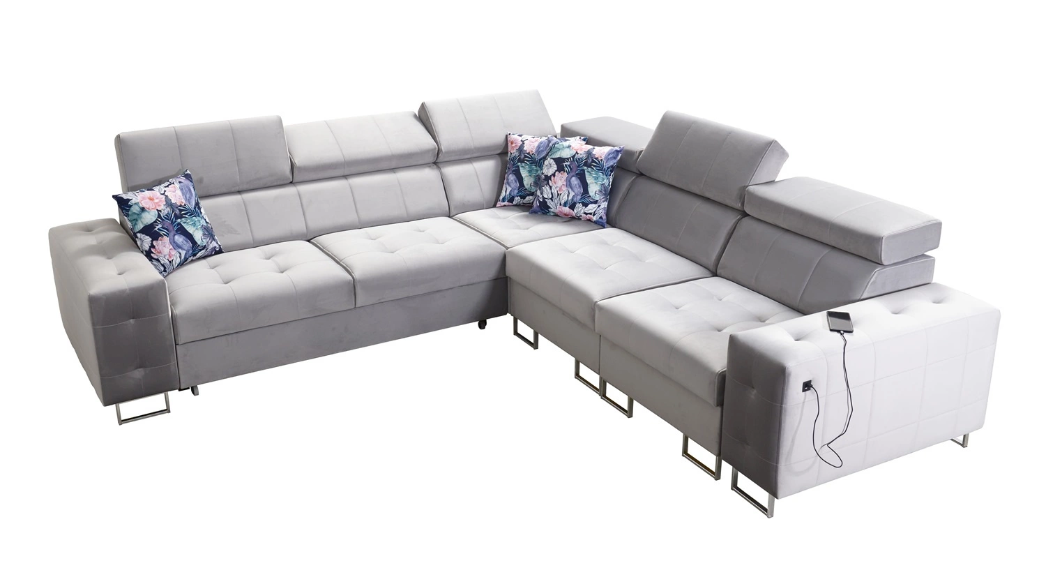 Die Extras dieses Möbels, die alle Benutzer schätzen werden, sind die Bettzeugbehälter, die Schlaffunktion, die verstellbaren Kopfstützen und die USB-Ladebuchse.