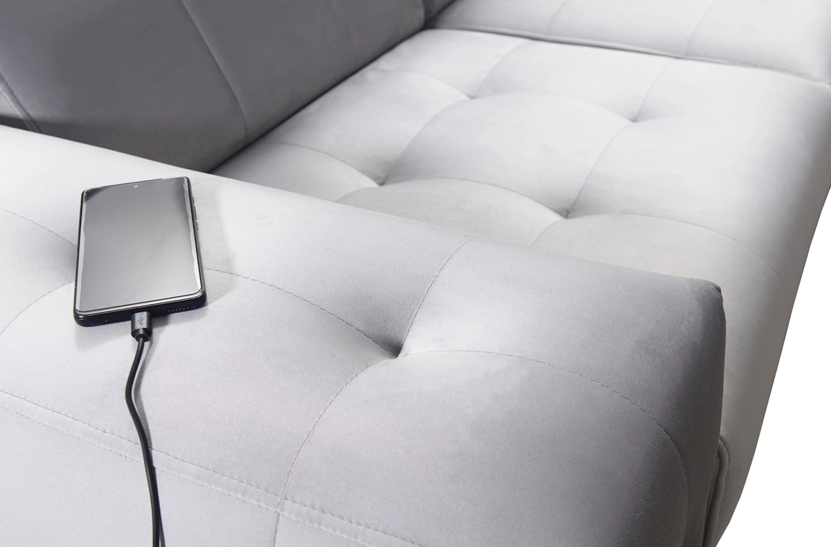 Die Extras dieses Möbels, die alle Benutzer schätzen werden, sind die Bettzeugbehälter, die Schlaffunktion, die verstellbaren Kopfstützen und die USB-Ladebuchse.