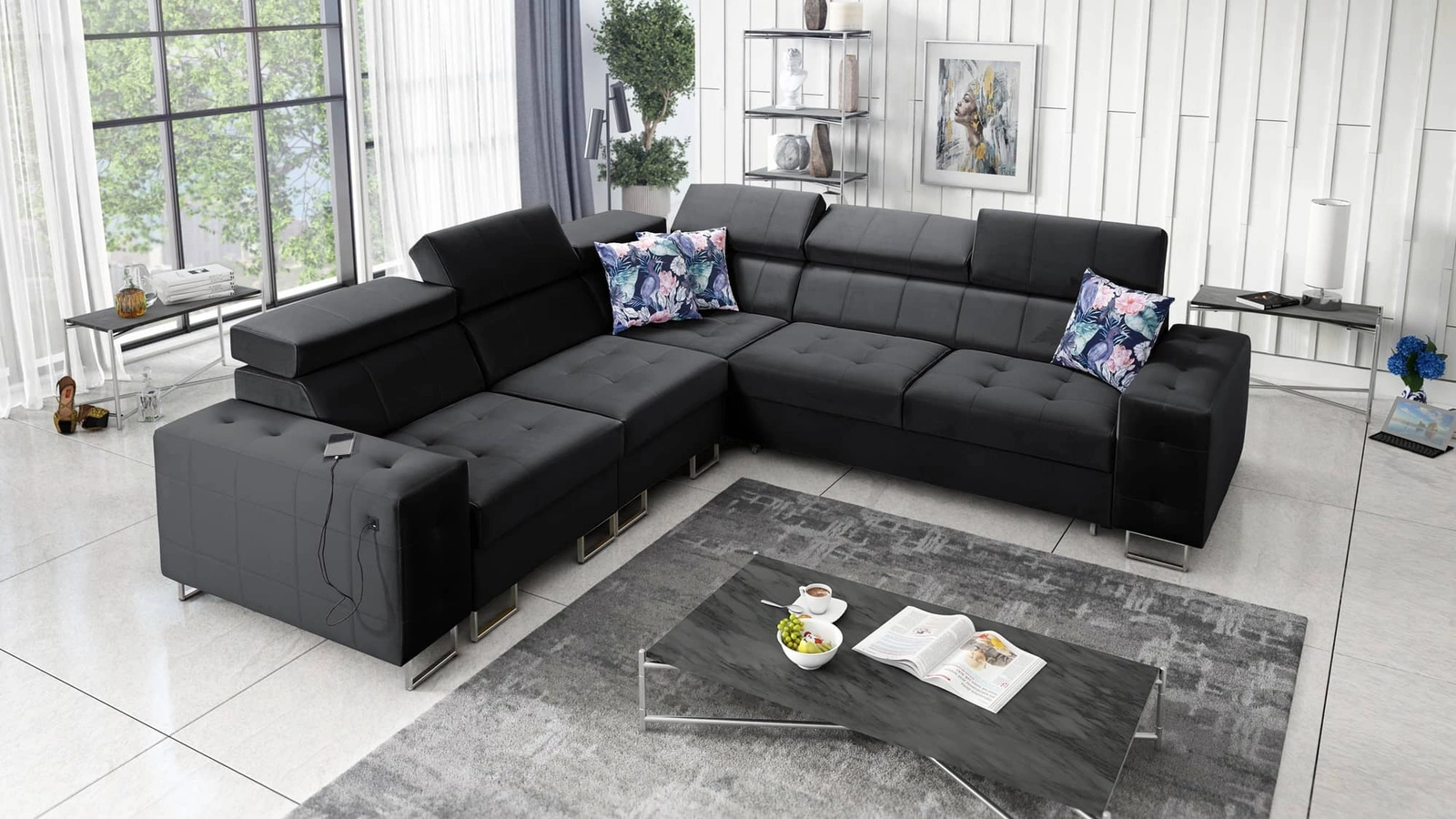 Hampton Ecksofa III in Schwarz mit verstellbaren Kopfstützen ist ein elegantes Möbelstück, das sich perfekt in jede Einrichtung Ihres Hauses einfügt.