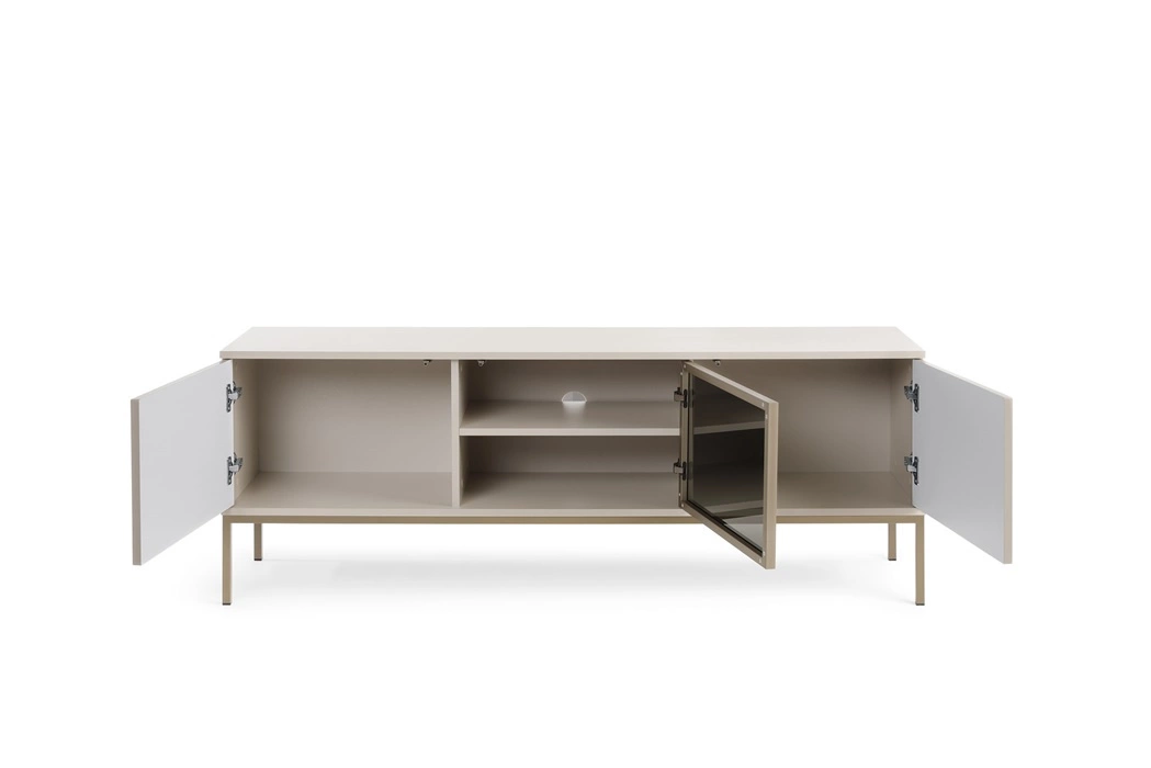Der RTV-Schrank Amma in Beige ist die perfekte Ergänzung für jedes Wohnzimmer oder Sitzungszimmer.