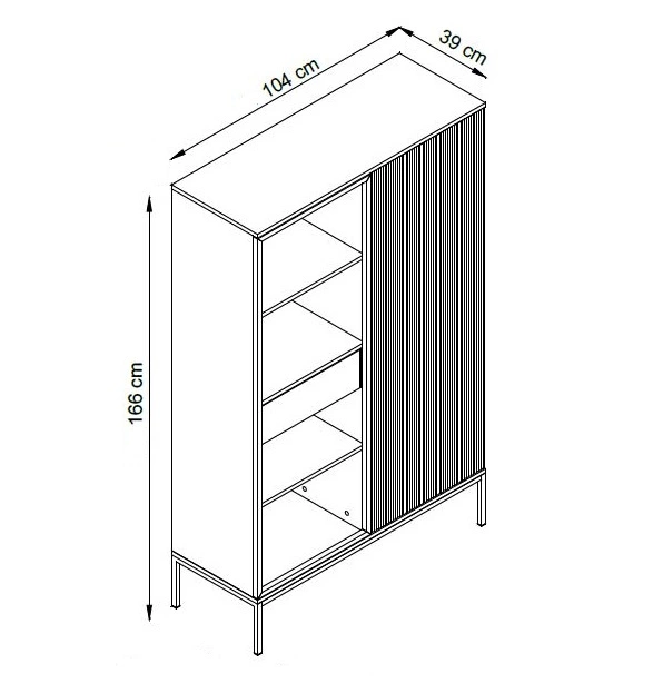 Die geriffelten Fronten sind aus 18 mm dicker MDF-Platte. Körper aus hochwertiger laminierter Karton, die resistent gegen äußere Einflüsse wie Druckstellen, Stöße und unglückliche Kratzer ist. Die glasierten Fronten der Solids sind hergestellt aus einscheibensicherheitsglas in einem dunklen Farbton. Der Oberschrank ist mit einer diskreten beleuchtung LED, verleiht den Möbeln eine optische Leichtigkeit und Funktionalität. Das Design der Möbel ist abwechslungsreich und geschmackvoll goldfarbene Metallbeine.