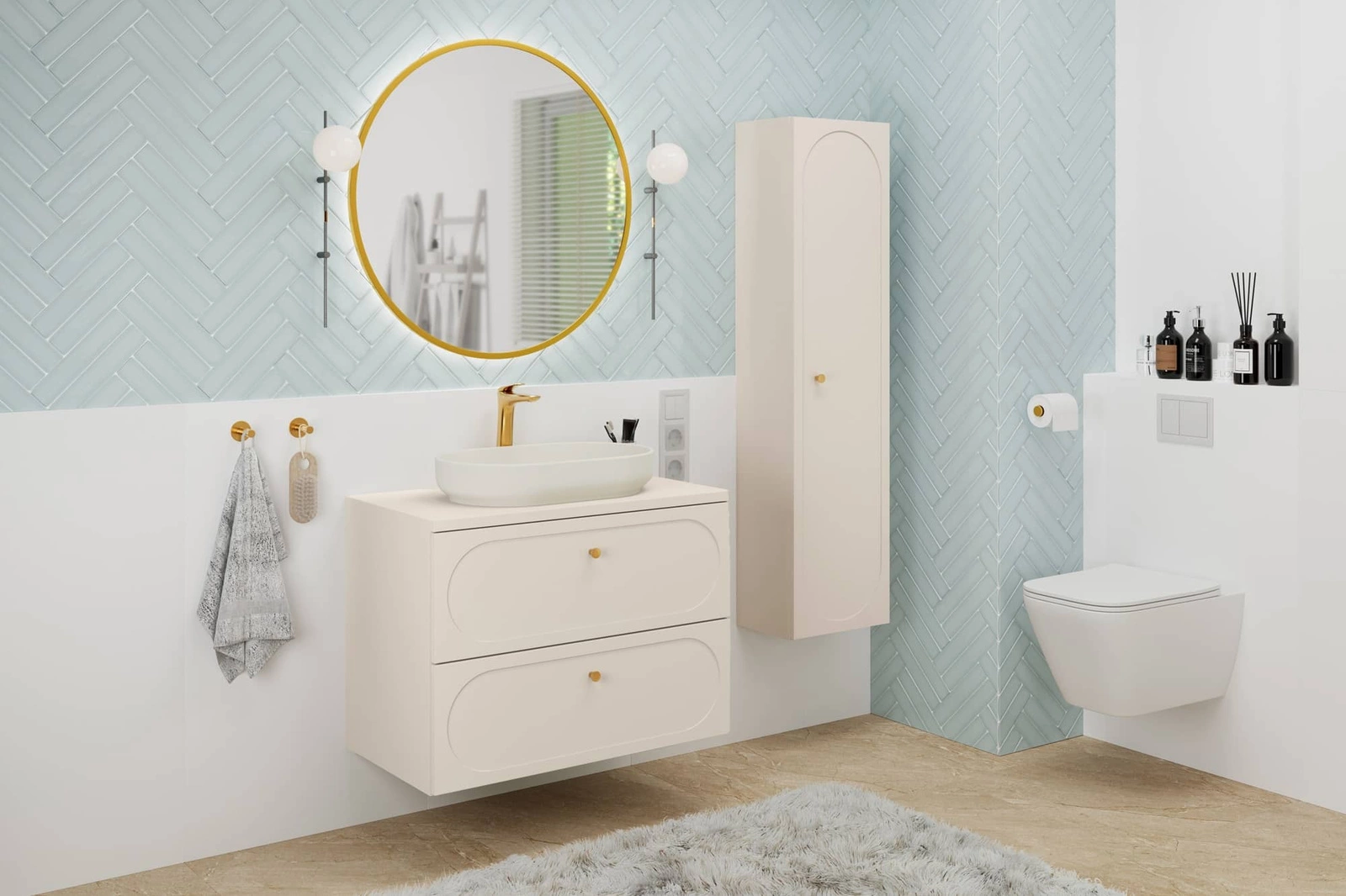 Der Waschtischunterschrank Donna Sand passt perfekt in moderne und klassische Badeinrichtungen.