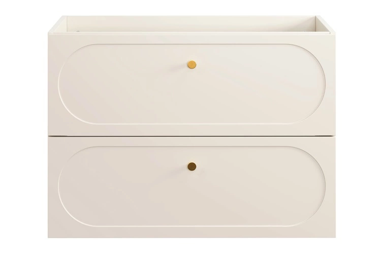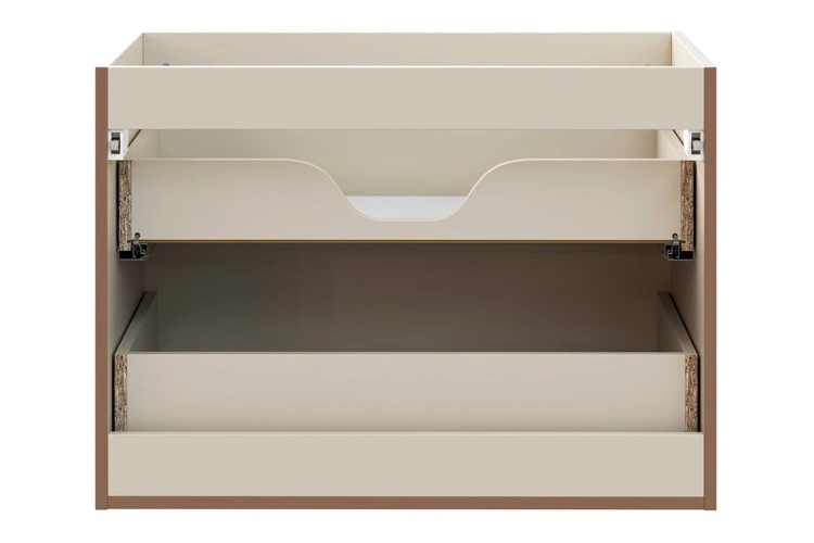 Der Badezimmerschrank ist ausgestattet mit zwei Schubladen. Der Nutzungskomfort wird durch die Verwendung von Schubladen mit führungen mit geräuschloser Schließfunktion, damit Schubladen leise und sanft schließen. Zur leichteren Installation des Abflusses ist die obere Schublade mit einer Vertiefung versehen. Alle Stücke der Kollektion Donna Sand sind unverwechselbar sorgfältige Verarbeitung und Liebe zum Detail, gewährleistung eines ästhetisch ansprechenden Erscheinungsbildes und langfristiger Zufriedenheit bei der Nutzung.