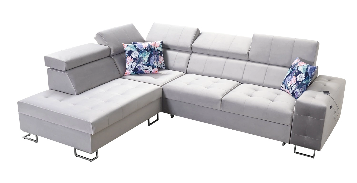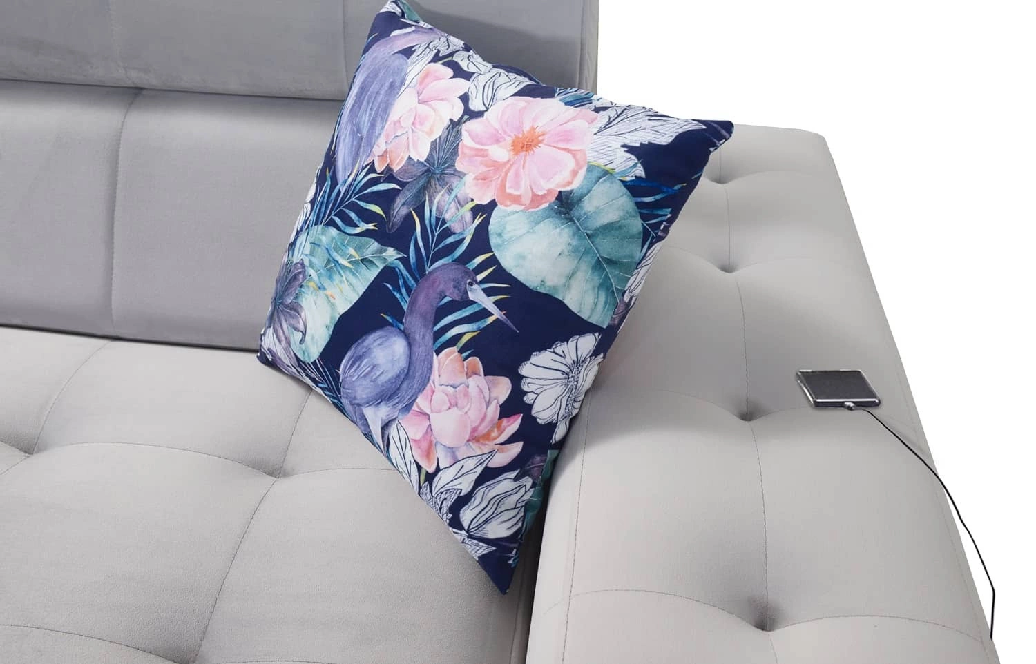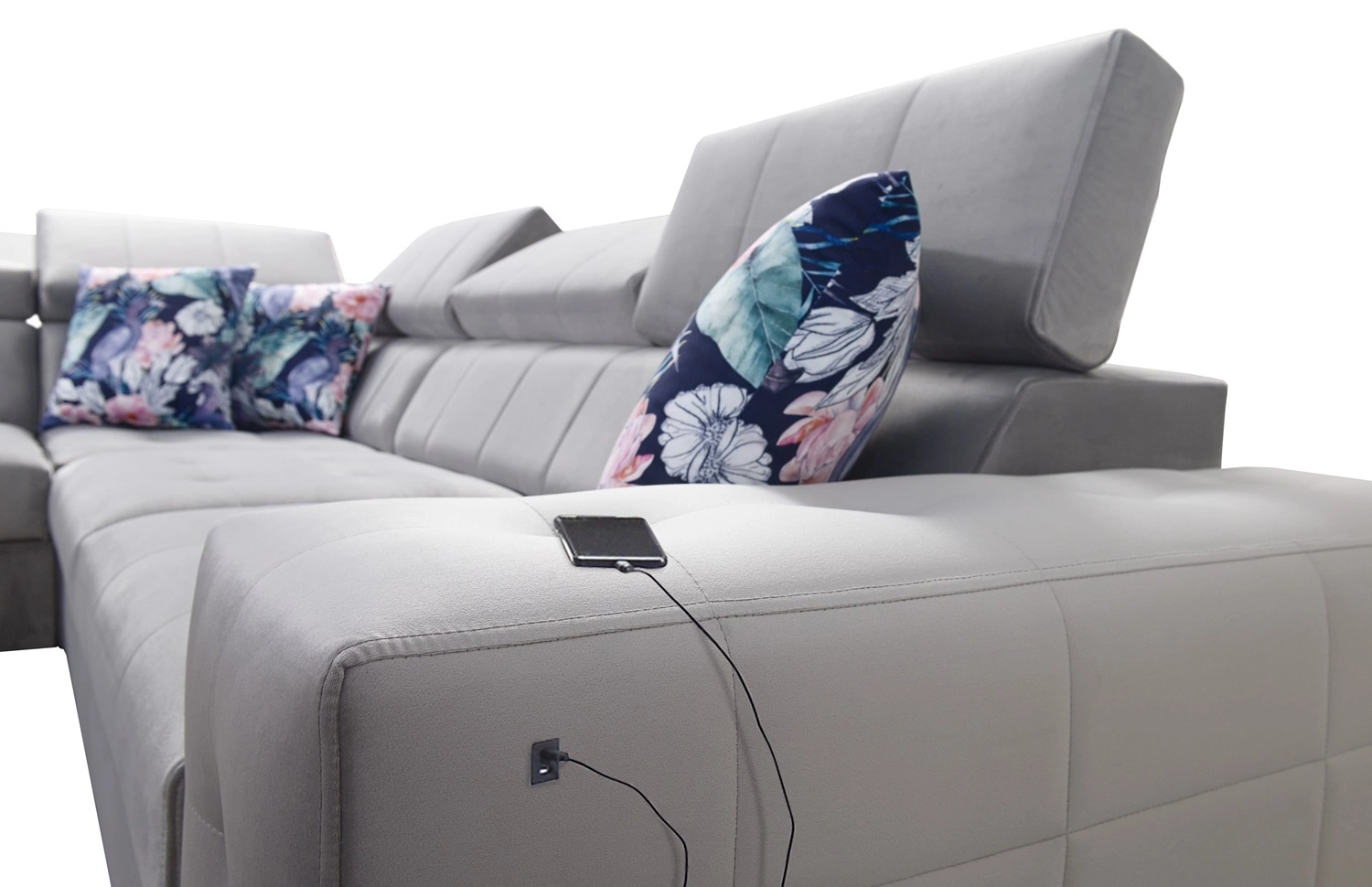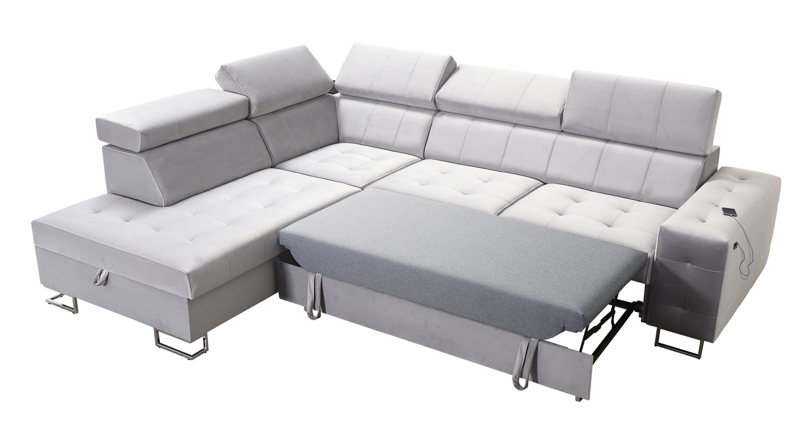 Die Extras dieses Möbelstücks, die alle Nutzer schätzen werden, sind der Bettzeugbehälter, die Schlaffunktion, die verstellbaren Kopfstützen, das Regal und die USB-Ladebuchse.