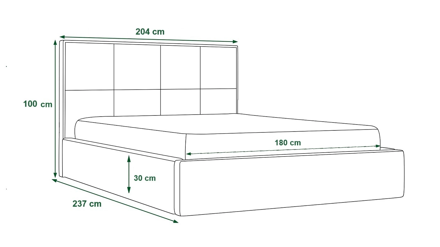 Łóżko z pojemnikiem Belli 180x200 cm wymiary