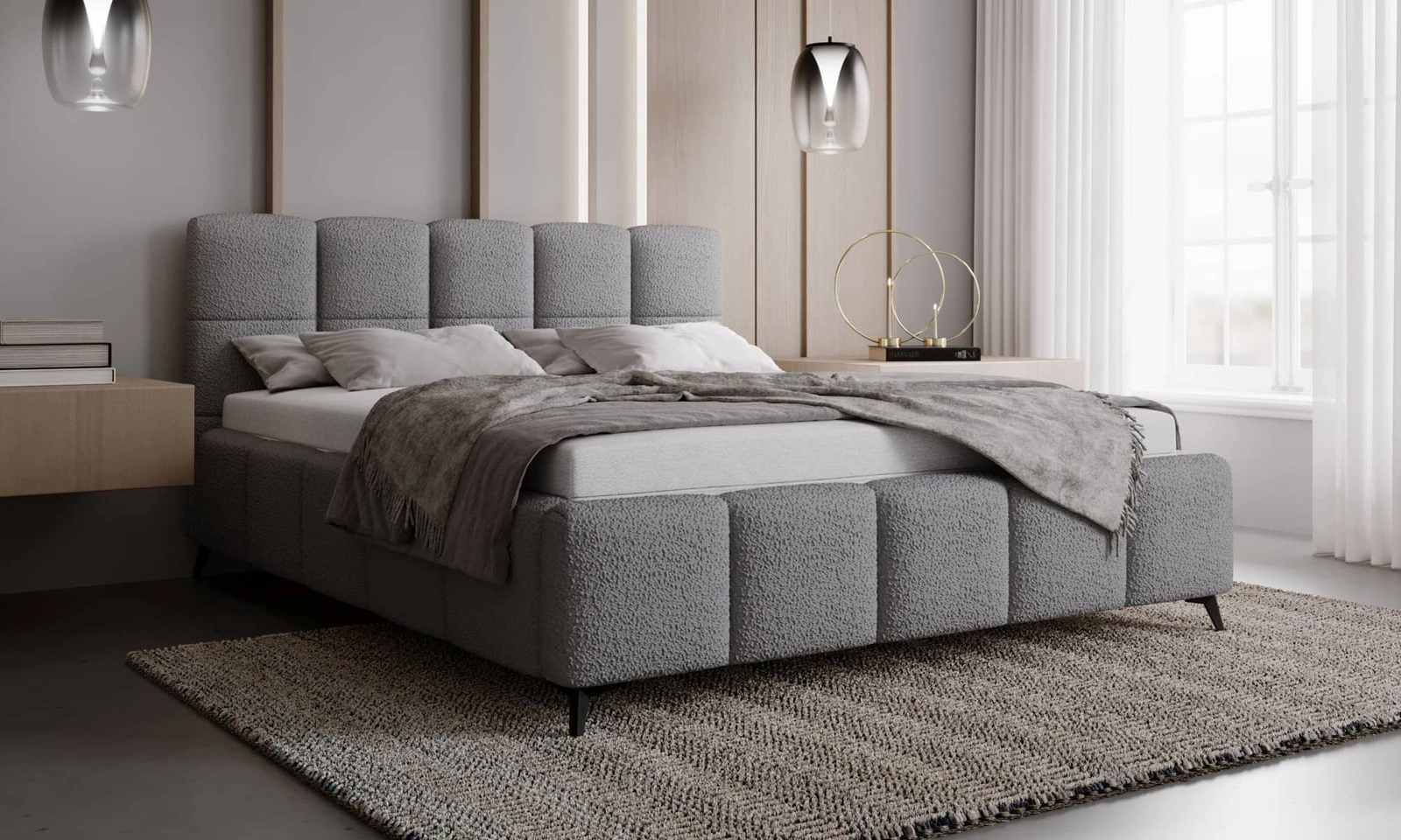 - Das Polsterbett Olne ist eine ideale Lösung für modern, skandinavisch und klassisch eingerichtete Schlafzimmer. Hergestellt aus weichem, fühlbarem Stoff mit markanter Schlingenoberfläche. Gepolstertes Kopfteil als Blickfang.