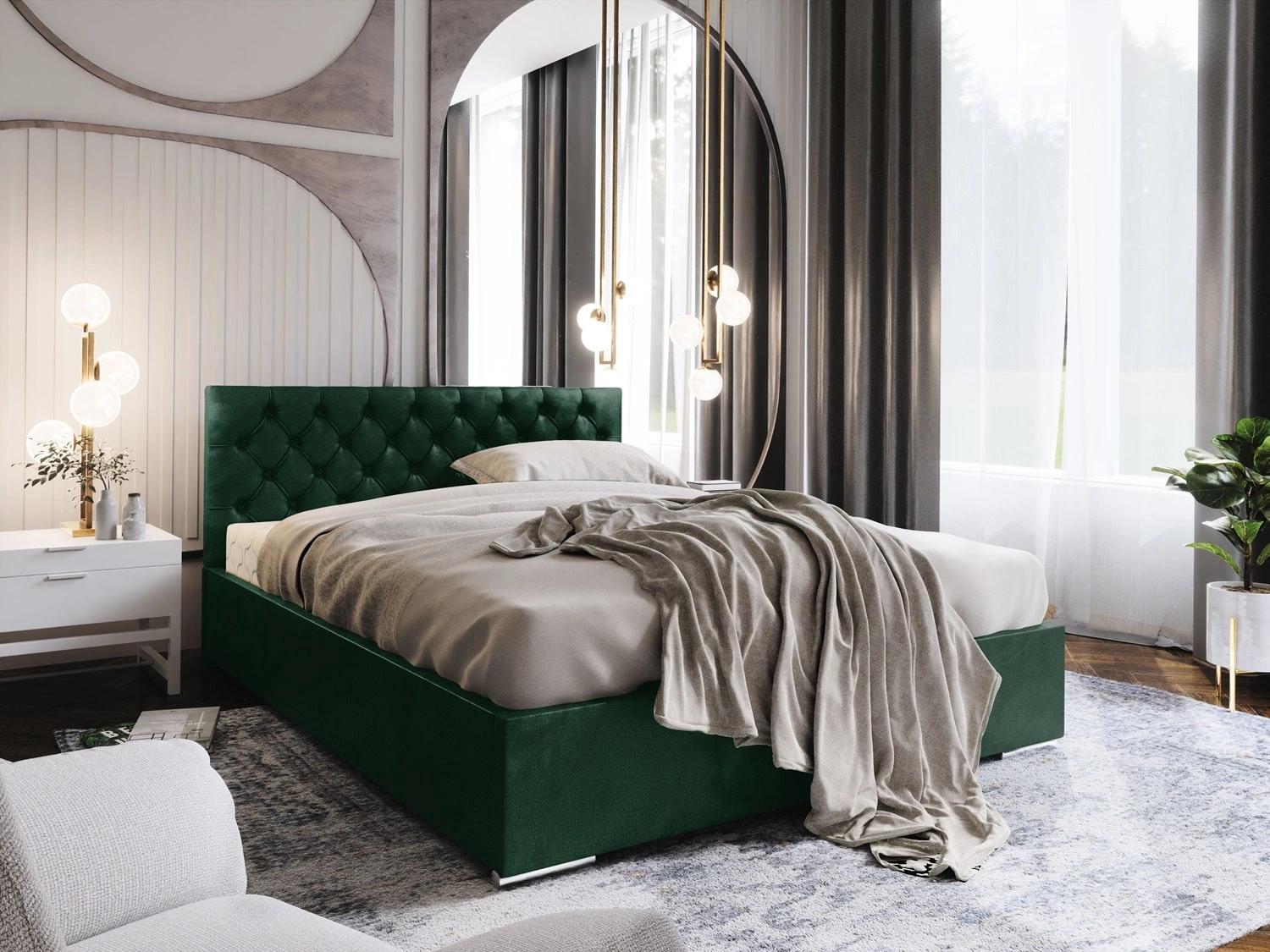 Polsterbett Alvorada 160x200 flaschengrün mit Container im modernen skandinavischen Stil mit gestepptem Kopfteil