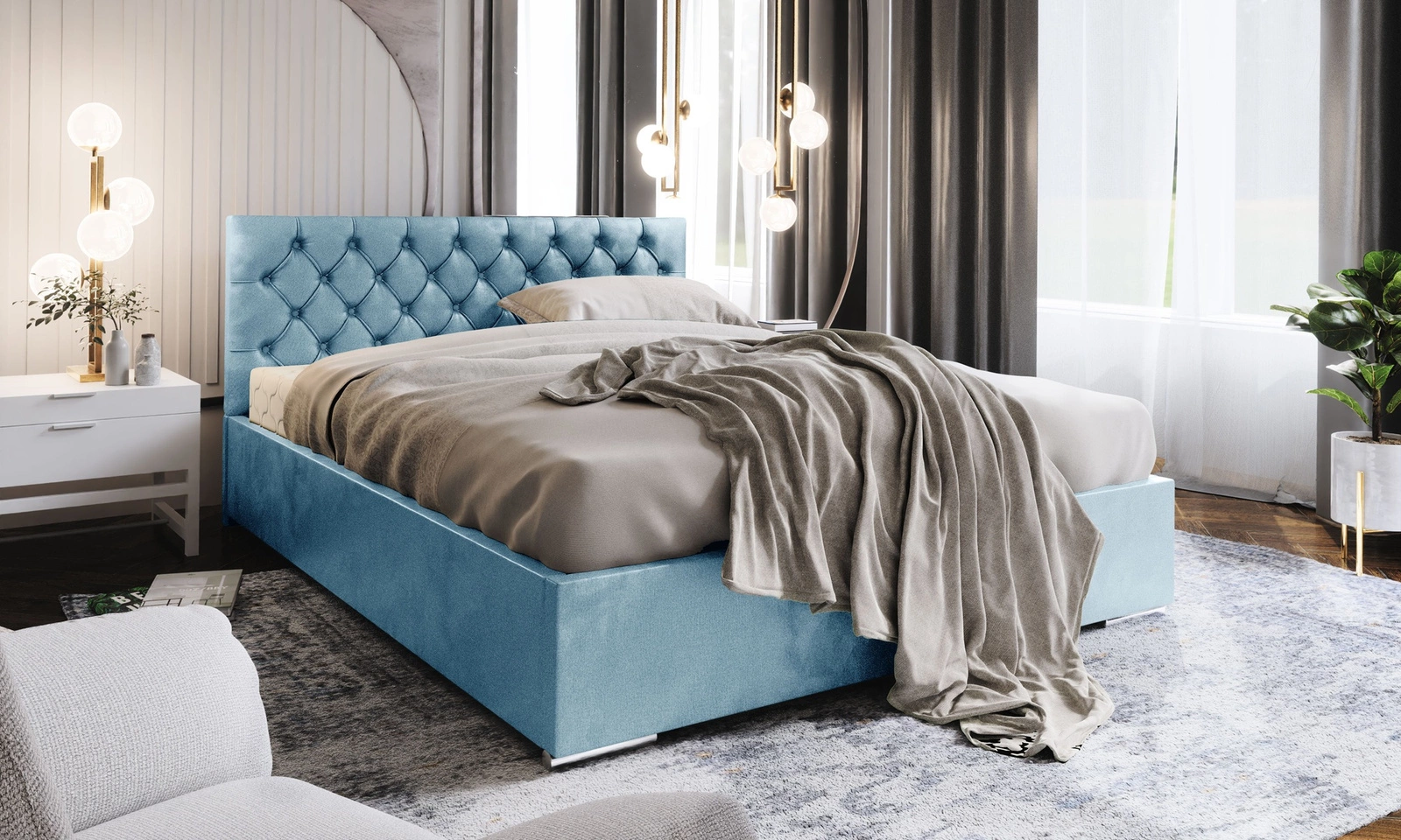- Das Alvorada-Polsterbett ist eine ideale Lösung für modern, skandinavisch und klassisch eingerichtete Schlafzimmer. Die Konstruktion des Bettes gewährleistet eine hohe Stabilität und einen hohen Nutzungskomfort. Die gesteppte Kopfstütze ist ein Blickfang