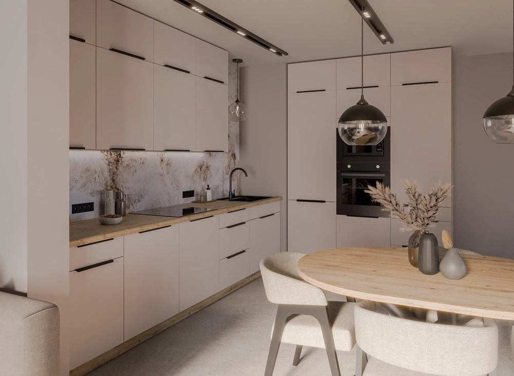 Der Küchenschrank aus der Soela-Kollektion wurde für alle entworfen, die Ästhetik zu schätzen wissen und auf der Suche nach einem funktionelle Lösungen für Ihre Küche. Einfache Feststoffe, glatte Oberflächen und eine elegante Kombination dezentes Beige in einem Kaschmir-Ton mit der natürlichen Wärme von handwerklich hergestellter Eiche macht die Soela-Küchenschränke passend zu jedem Einrichtungsstil. Die Küchenmöbel von Soela zeichnen sich aus durch solide Verarbeitungsqualität, und utilitaristisches Design. Modulare Möbel für die Küche sind Produkte, die für den Komfort im täglichen Gebrauch und ein dauerhaftes, elegantes Aussehen gemacht sind.