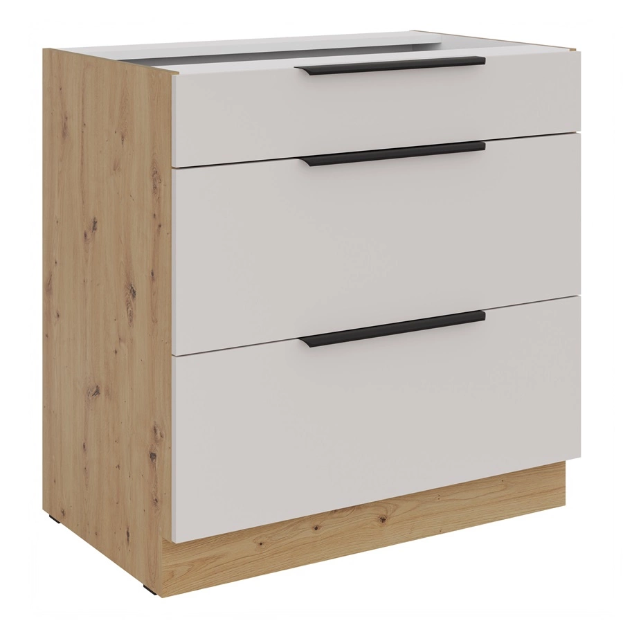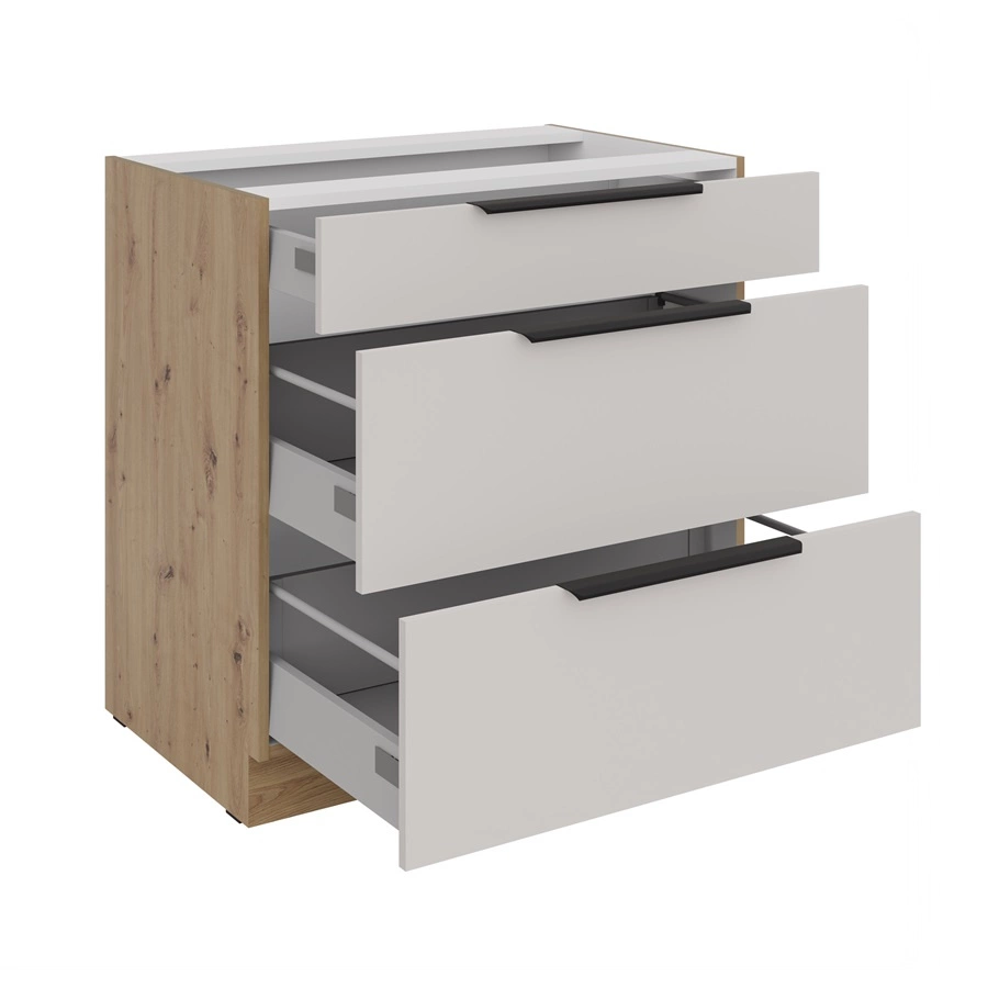 Küchenschrank mit Schubladen Soela 80 D 3S BB Metallkantengriffe feuchtigkeits- und beschädigungsbeständiger Schrank
