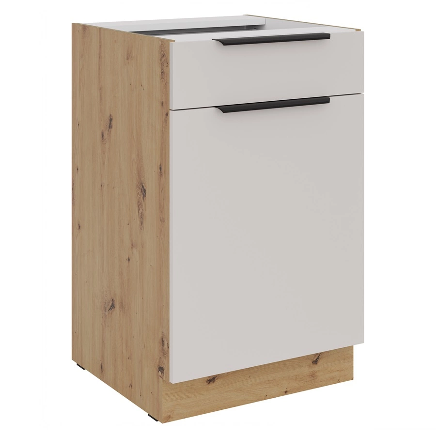 Der Küchenschrank mit Schublade 50 cm Soela in Eiche artisan / beige gehört zu der Kategorie der modularen Küchenmöbel, die verwendet werden können, um jede gewünschte Set zu erstellen.