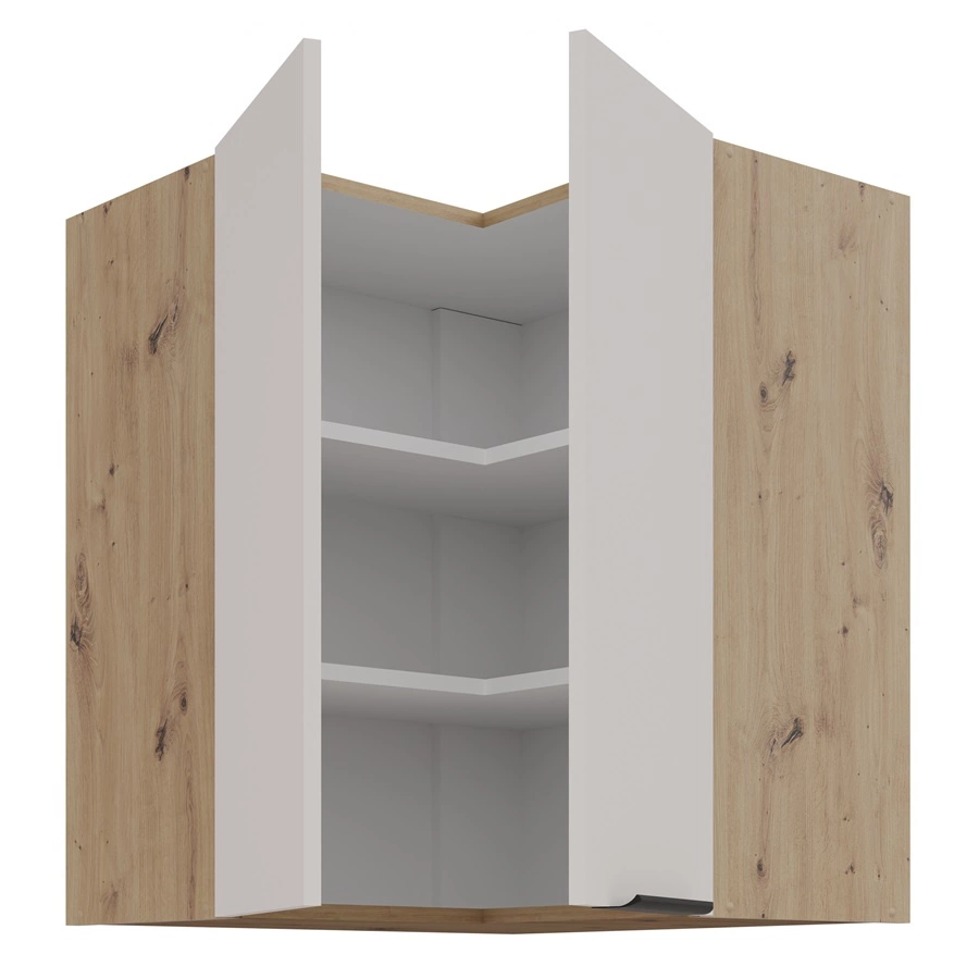 Der wandhängende Eck-Küchenschrank Soela in Eiche artisan / beige gehört zur Kategorie der modularen Küchenmöbel, aus denen sich jedes gewünschte Set zusammenstellen lässt.