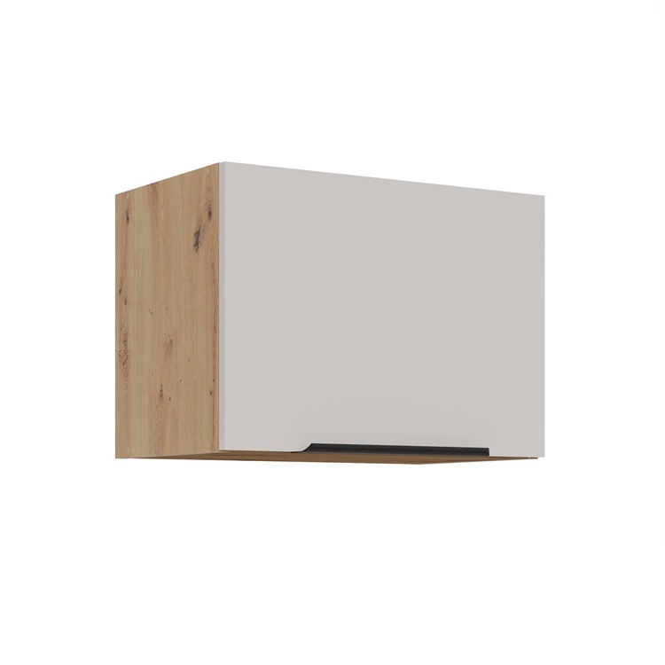 Der 50 cm hohe Soela Traufschrank in Eiche artisan / beige gehört zur Kategorie der modularen Küchenmöbel, aus denen sich jedes gewünschte Set zusammenstellen lässt.