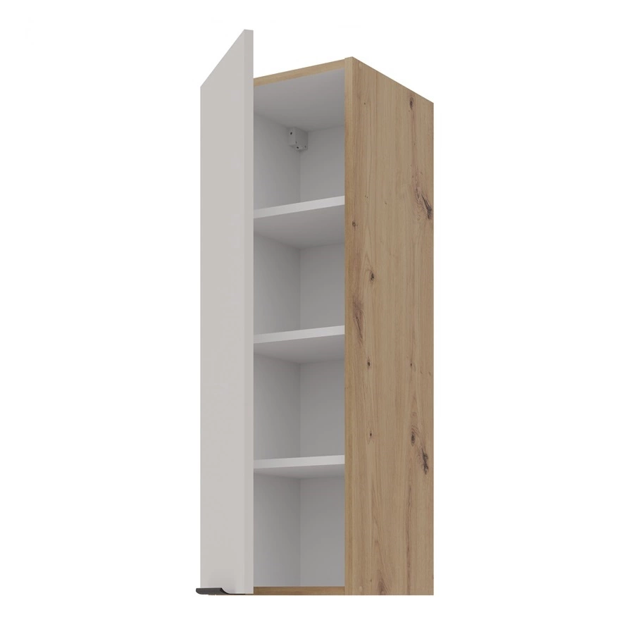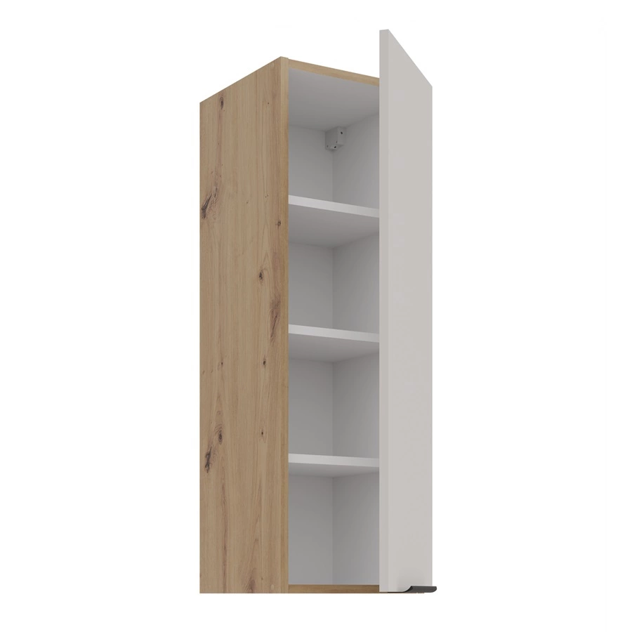 Der 30 cm hohe Soela-Küchenhängeschrank in Eiche artisan / beige gehört zur Kategorie der modularen Küchenmöbel, aus denen sich jedes gewünschte Set zusammenstellen lässt.