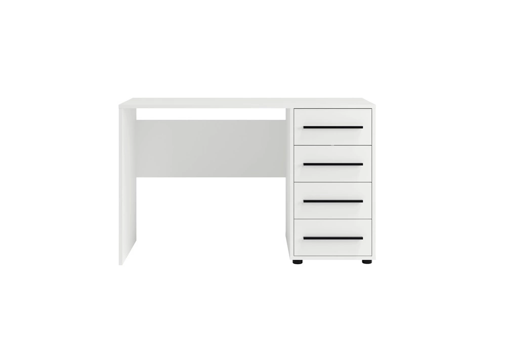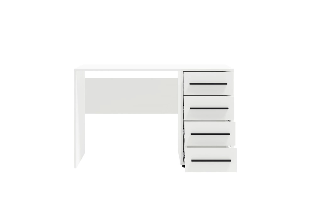 Der Schreibtisch ist mit einer ergonomischen platte und 4 Schubladen. Die geraden weißen Schreibtische von Maxione garantieren komfortable und problemlose Nutzung und Langlebigkeit des gesamten Möbelstücks für viele Jahre der Nutzung. Das zeitlose Weiß verleiht dem Raum eine helle und gemütliche Atmosphäre und macht die Maxione-Schreibtische auch als Schreibtische geeignet für das Home Office oder den Kinderschreibtisch. Der Schreibtisch kann auch als Schminktisch verwendet werden, was die Organisation der Kosmetika und Schmuckstücke einer Frau erleichtert.