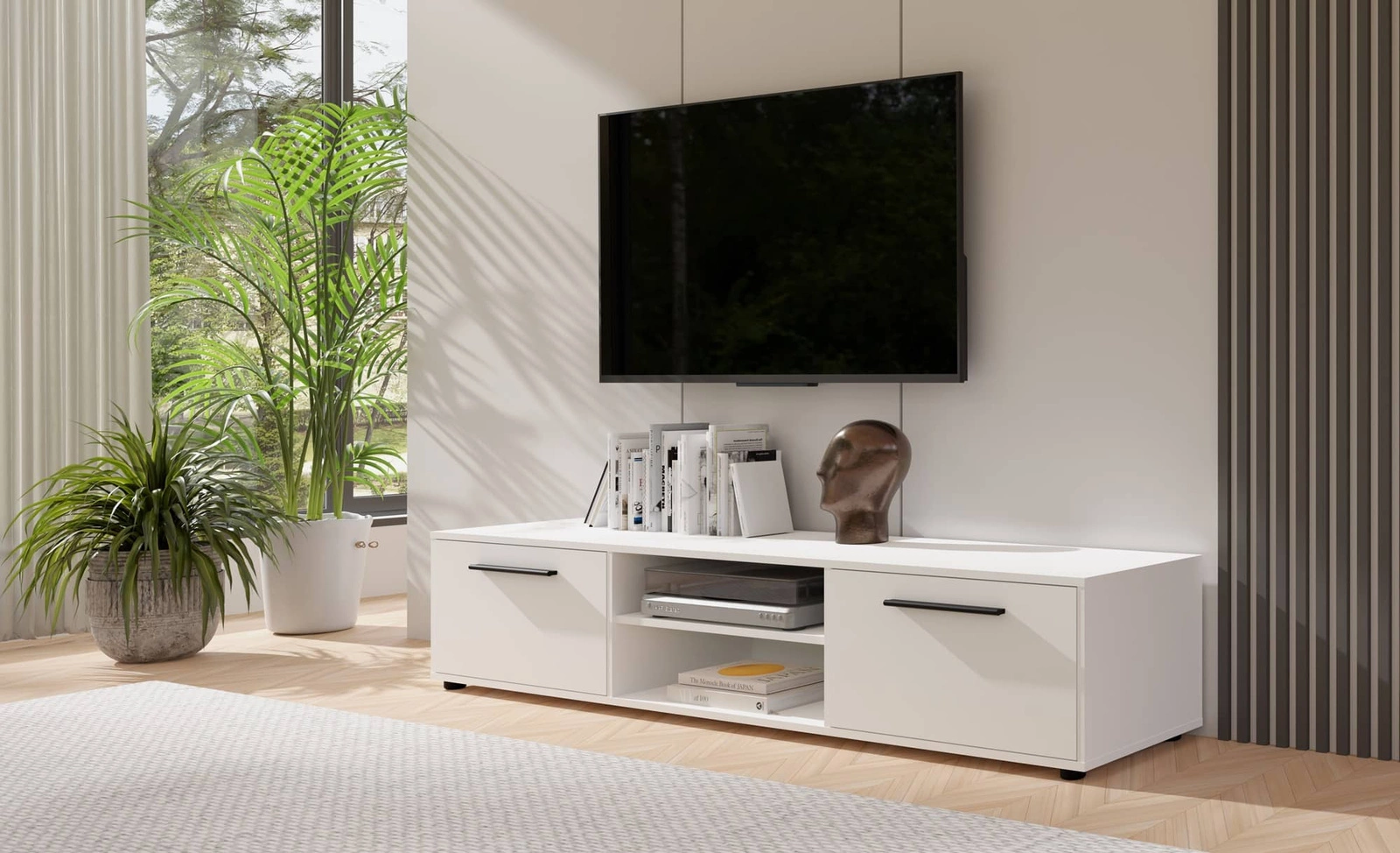 Der RTV-Schrank Maxione 190 cm in Weiß ist die perfekte Ergänzung für jedes Wohnzimmer oder Sitzungszimmer.