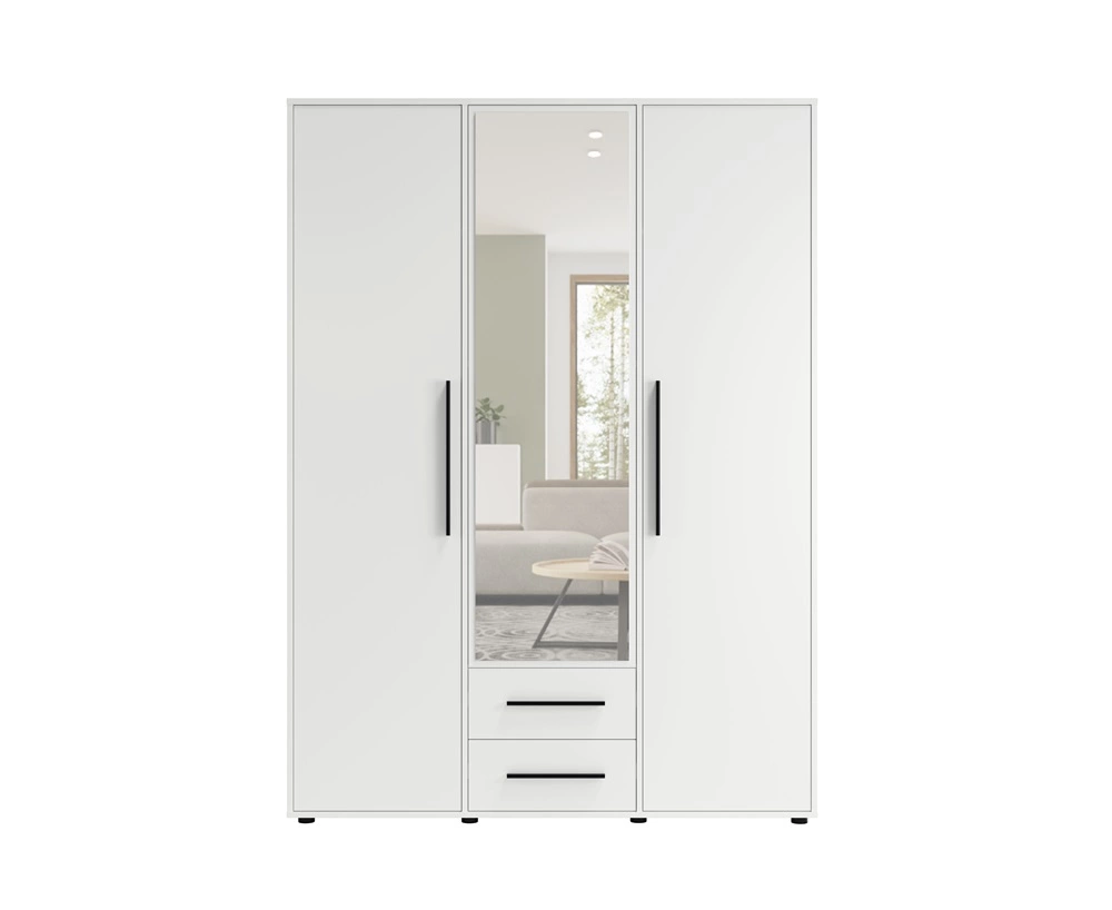Spiegelschrank Maxione 150 cm weiß funktionaler Kleiderschrank für Schlafzimmer Jugendzimmer oder Flur mit Schubladen angereichert