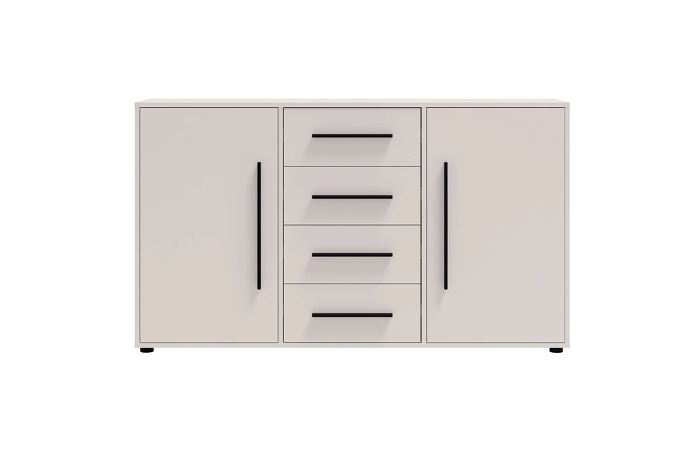 Kommode Maxione 150 cm beige elegante und vielseitige Kommode Stil für Schlafzimmer oder Wohnzimmer geschmackvolle schwarze Griffe