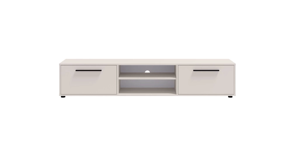 Der RTV-Schrank besteht aus 2 nach unten öffnende Türen und Einlegeböden. Die Aussparung in der Mitte des Schranks ist ein idealer Platz für Fernsehgeräte oder eine Spielkonsole. Der TV-Schrank garantiert komfortable und störungsfreie Nutzung und Langlebigkeit des gesamten Möbelstücks für viele Jahre der Nutzung. Die beige Farbe in einem Kaschmir-Ton verleiht dem Raum ein helles und gemütliches Gefühl und macht die die Maxione RTV-Schränke sind perfekt für große, helle Räume innenräume moderner Stil. Moderne RTV-Schränke und industrielle RTV-Schränke mit einer eleganten Oberfläche fügt sich perfekt in jede Einrichtung ein.