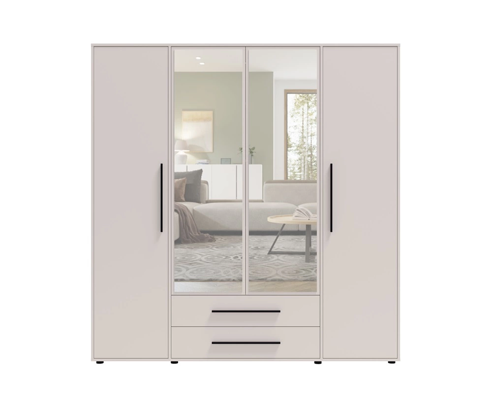 Spiegelschrank Maxione 198 cm beige geräumiger Kleiderschrank für Schlafzimmer Jugendzimmer oder Flur mit Schubladen angereichert