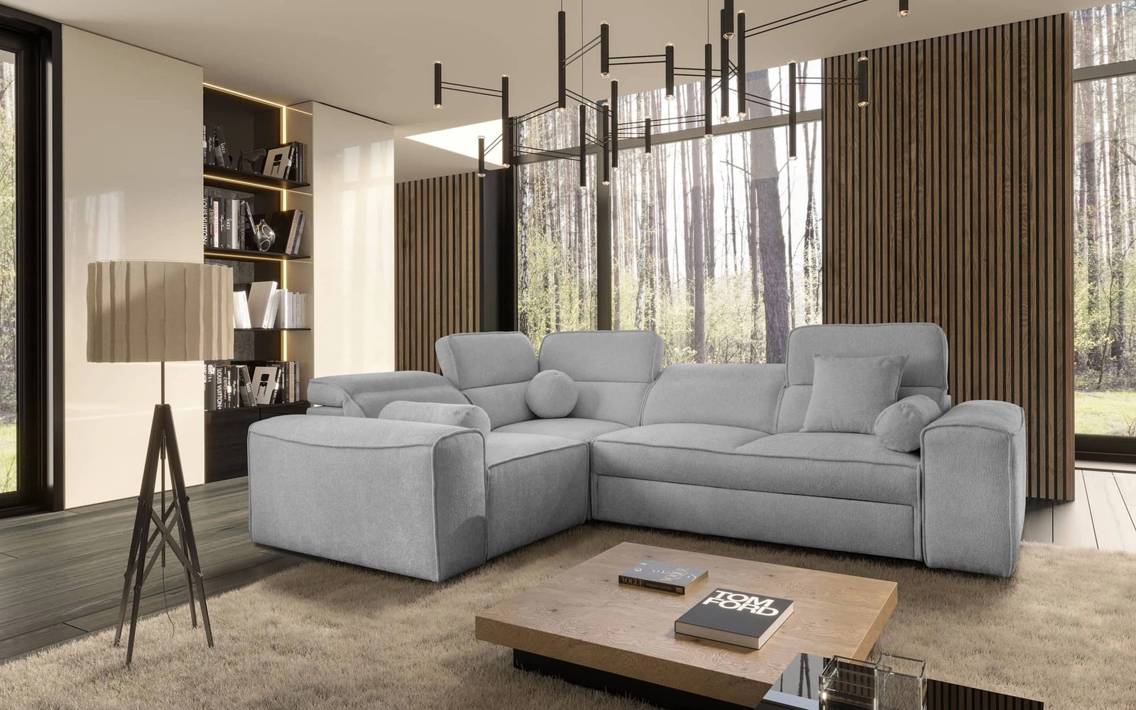 Ecksofa mit Schlaffunktion Viano II hellgrau links Designer Schlafsofa das sich in moderne Einrichtungen einfügt