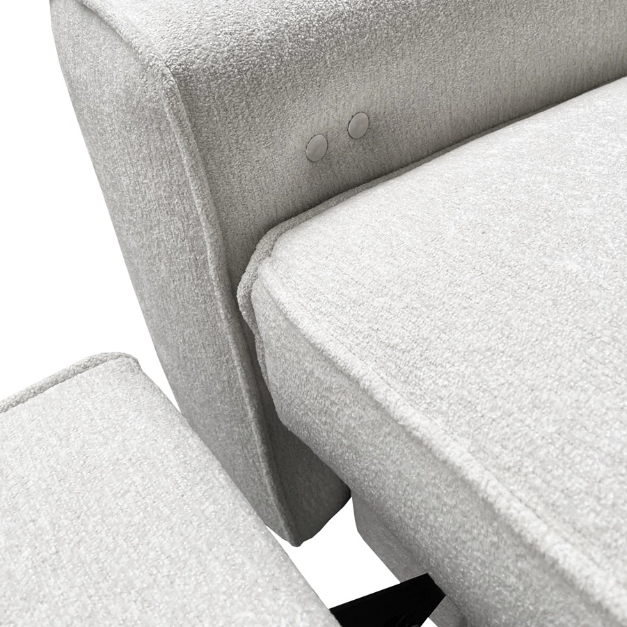 Die Extras dieses Möbels, die jeder Benutzer zu schätzen weiß, sind die ausziehbare Fußstütze, die verstellbaren Kopfstützen, die breiten Armlehnen und die Zierkissen in verschiedenen Formen.