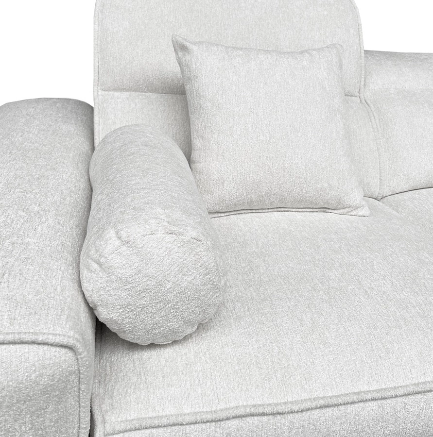 Die Extras dieses Möbels, die jeder Benutzer zu schätzen weiß, sind die ausziehbare Fußstütze, die verstellbaren Kopfstützen, die breiten Armlehnen und die Zierkissen in verschiedenen Formen.