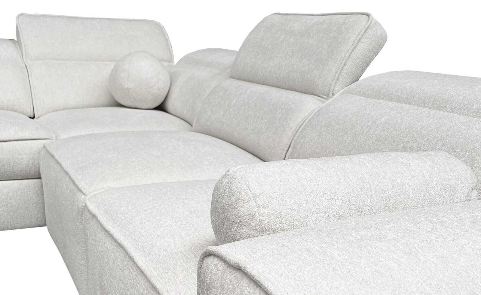 - Das Ecksofa Viano III zeichnet sich durch seine außergewöhnliche Vielseitigkeit aus, dank derer es sich perfekt in viele Einrichtungsstile integrieren lässt. Die Verwendung von hochwertigem Stoff mit luxuriöser Textur und ästhetischem Design verleiht der