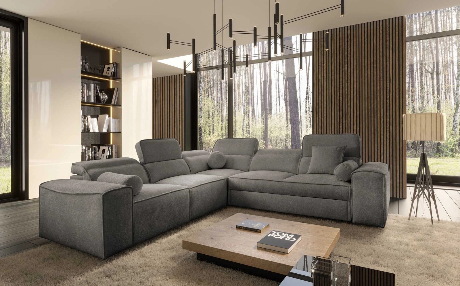 Ecksofa mit Schlaffunktion Viano III grau linke Seite stilvolles Ecksofa mit Bettzeugcontainern perfekt für moderne Interieurs