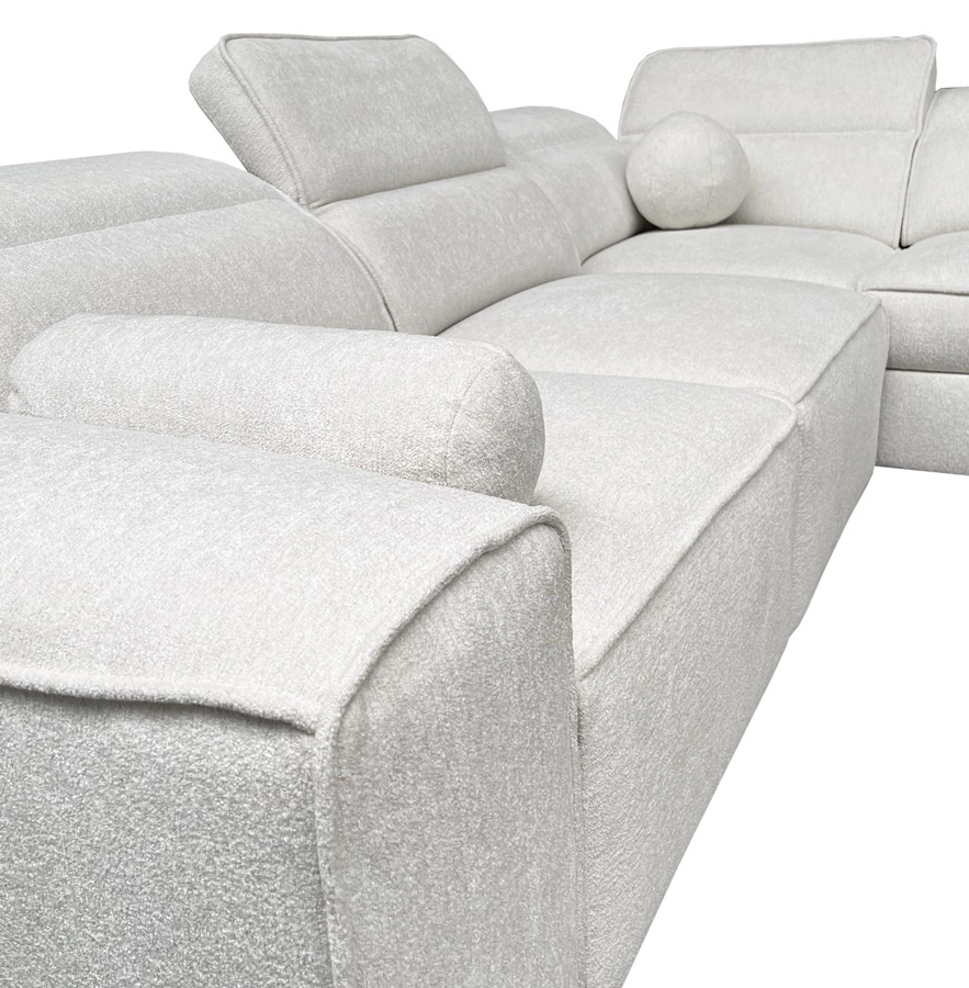 - Das Ecksofa Viano III zeichnet sich durch seine außergewöhnliche Vielseitigkeit aus, dank derer es sich perfekt in viele Einrichtungsstile integrieren lässt. Die Verwendung von hochwertigem Stoff mit luxuriöser Textur und ästhetischem Design verleiht der