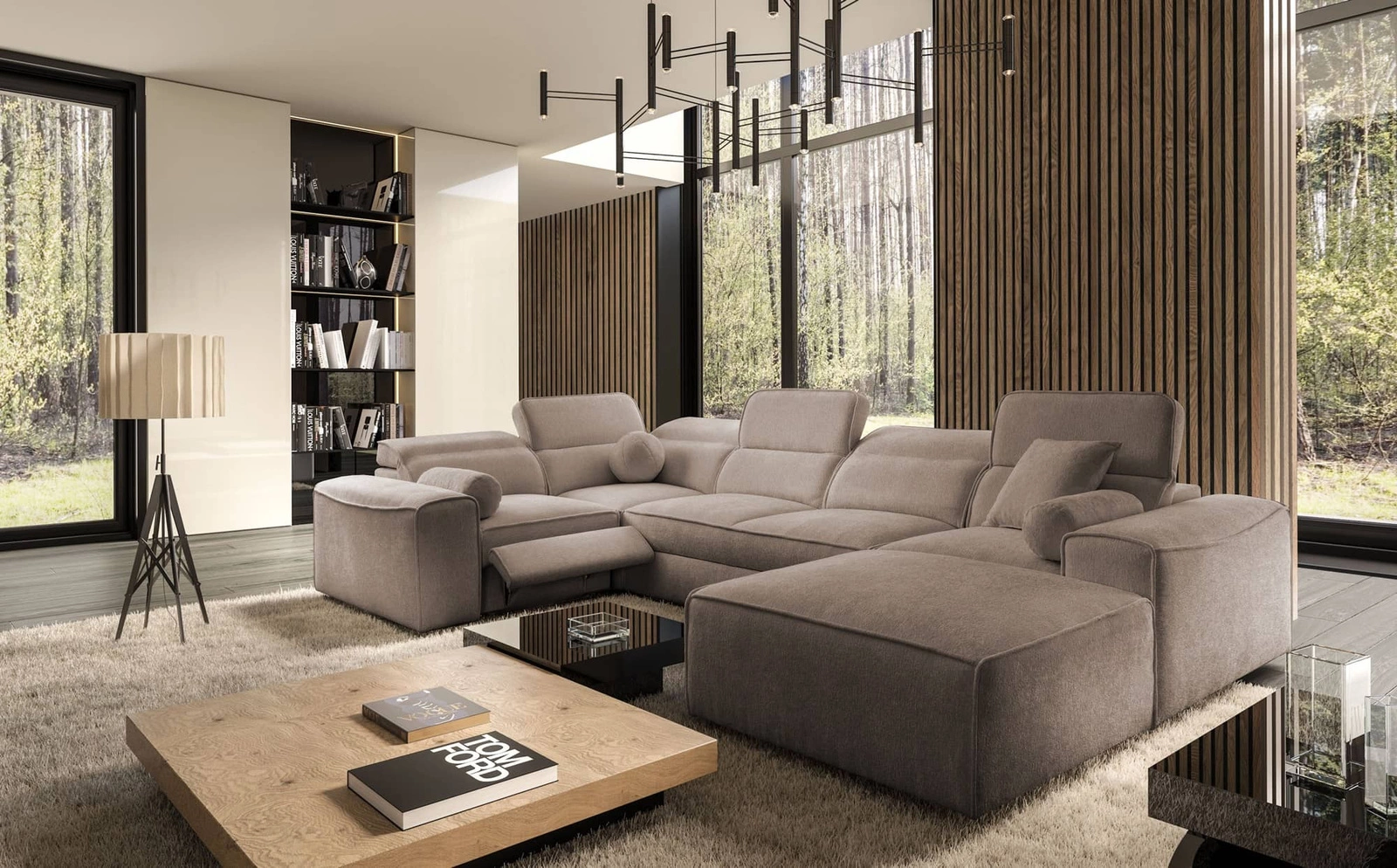 - Das Ecksofa Viano IV Lux zeichnet sich durch seine außergewöhnliche Vielseitigkeit und Funktionalität aus. Hochwertiger Stoff mit luxuriöser Textur und ästhetisch ansprechendem Erscheinungsbild für einen exklusiven Touch. Eine ausziehbare Fußstütze sorgt