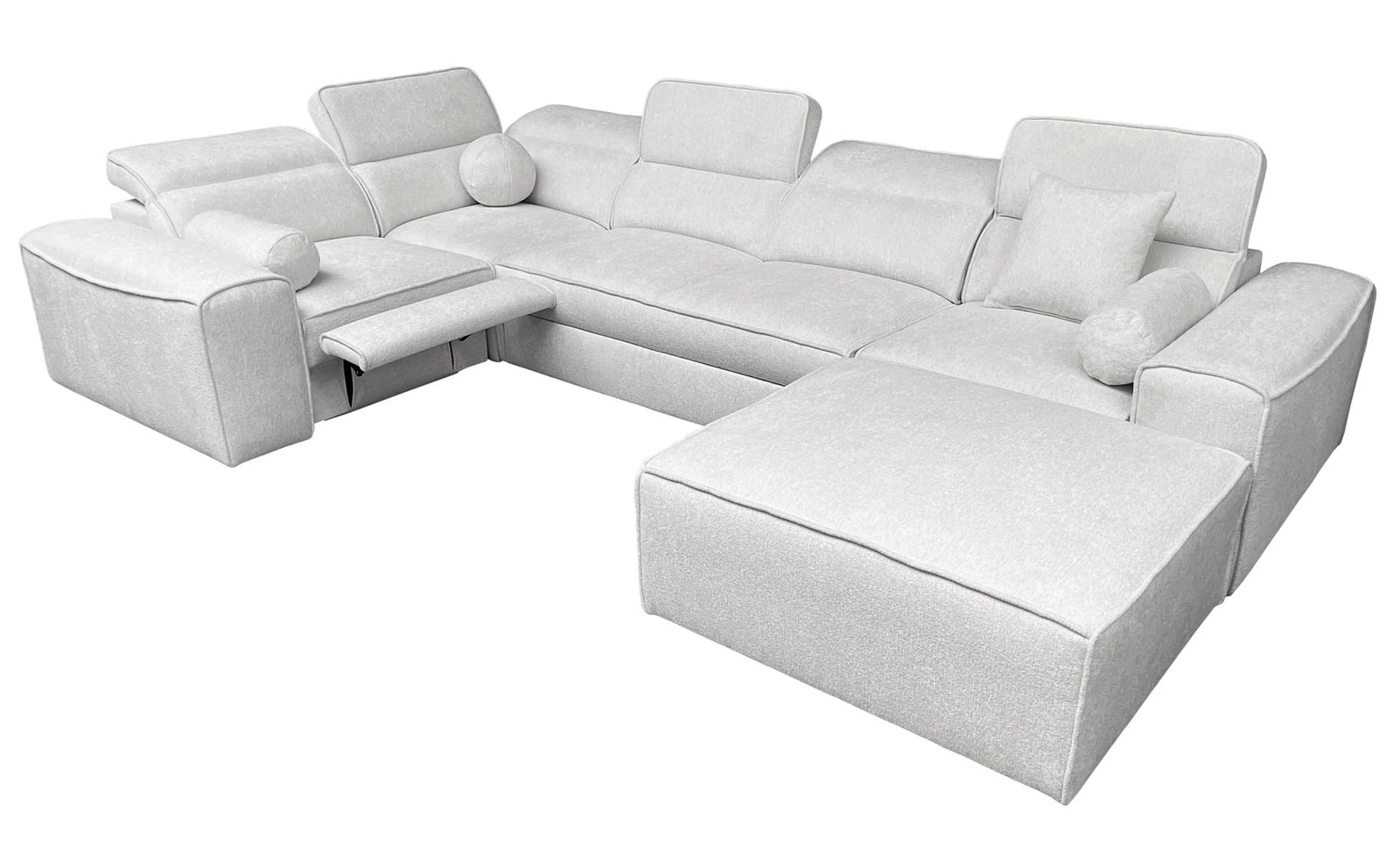 - Das Ecksofa Viano IV Lux zeichnet sich durch seine außergewöhnliche Vielseitigkeit und Funktionalität aus. Hochwertiger Stoff mit luxuriöser Textur und ästhetisch ansprechendem Erscheinungsbild für einen exklusiven Touch. Eine ausziehbare Fußstütze sorgt