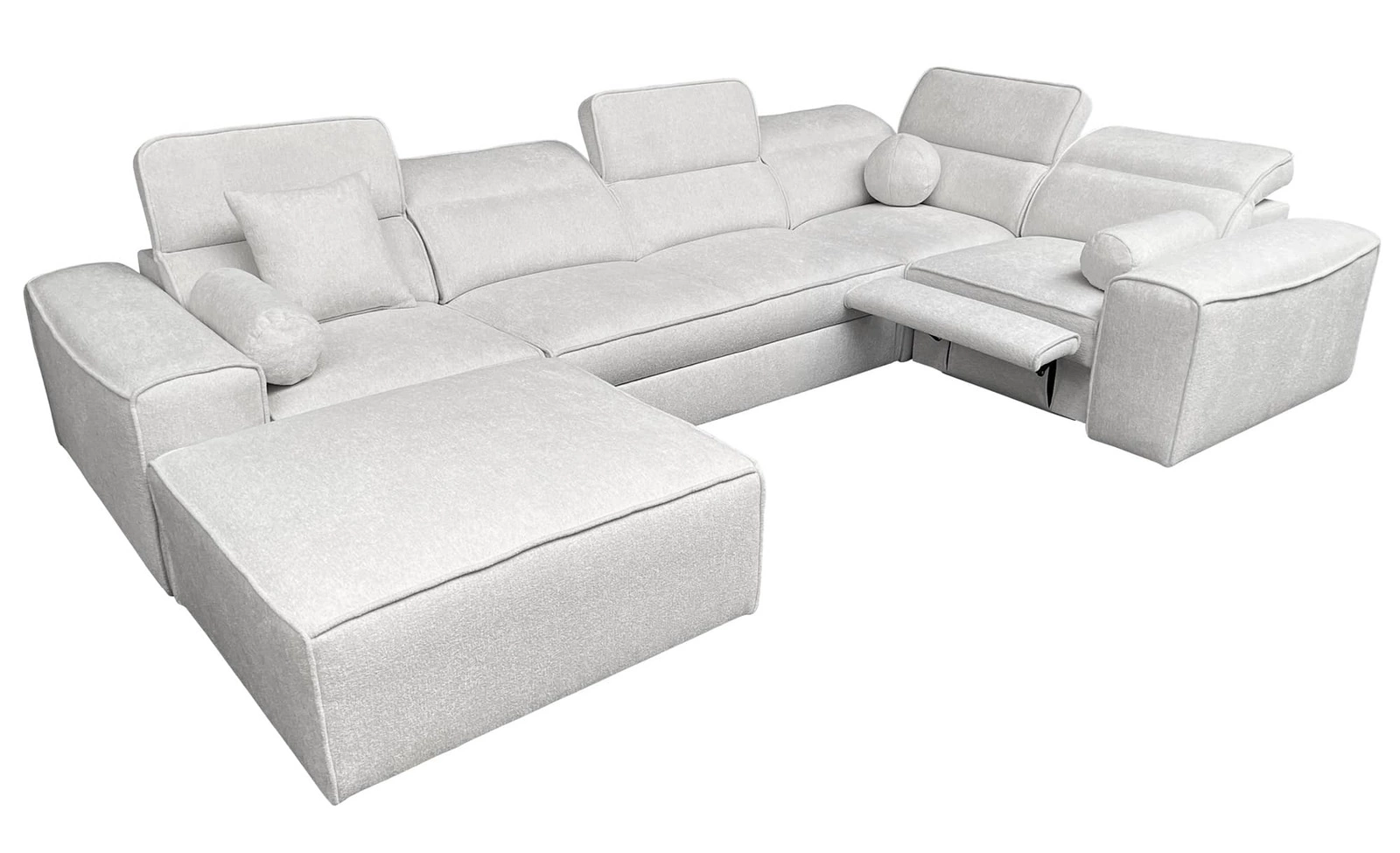 - Das Ecksofa Viano IV Lux zeichnet sich durch seine außergewöhnliche Vielseitigkeit und Funktionalität aus. Hochwertiger Stoff mit luxuriöser Textur und ästhetisch ansprechendem Erscheinungsbild für einen exklusiven Touch. Eine ausziehbare Fußstütze sorgt