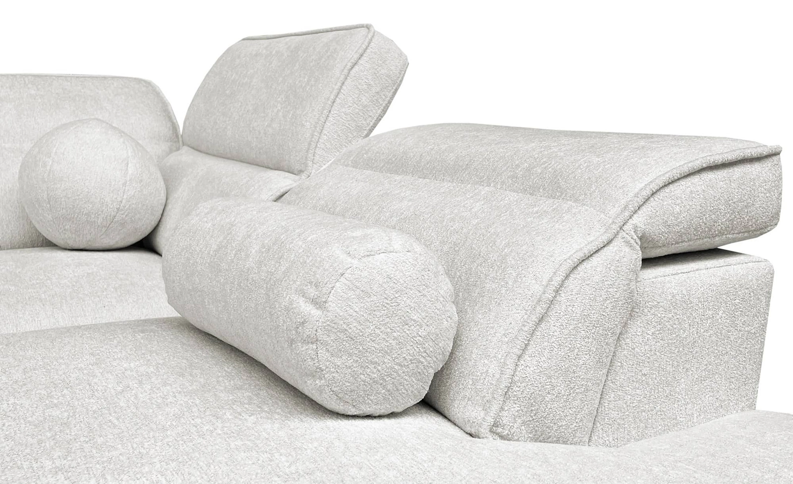 Ecksofa Viano VI in Hellgrau ist ein interessant aussehendes Möbelstück mit einer eleganten Oberfläche.