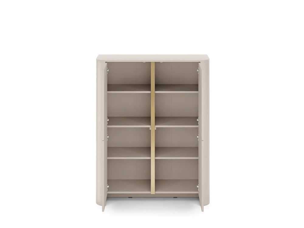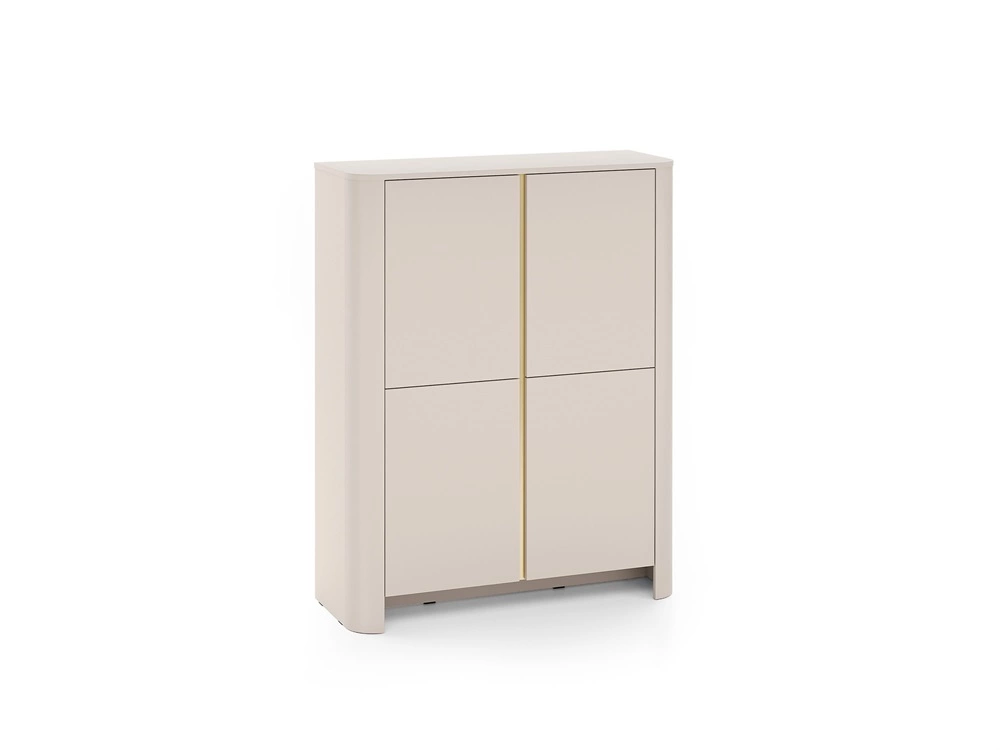Hochkommode Bari ist nicht nur ein funktionelles Möbelstück, sondern auch ein elegantes Element der Raumgestaltung. Einzigartig, abgerundete Kanten kommode und einer Front mit glatter Oberfläche sie bringen Harmonie in den Raum und lassen die gesamte Struktur sehr modisch aussehen. Ungewöhnlich pkombination aus beige in einem Kaschmir-Ton mit goldener Umrandung an der Trennwand schafft einen stilvollen Kontrast. Hohe Basis tist nicht nur ein stilvolles Accessoire, sondern auch eine sehr praktische Ergänzung zur Kommode Bari. Diese Designer-Kommode wird zum Mittelpunkt des Wohnzimmers, zieht die Blicke auf sich und unterstreicht den Stil der Einrichtung.