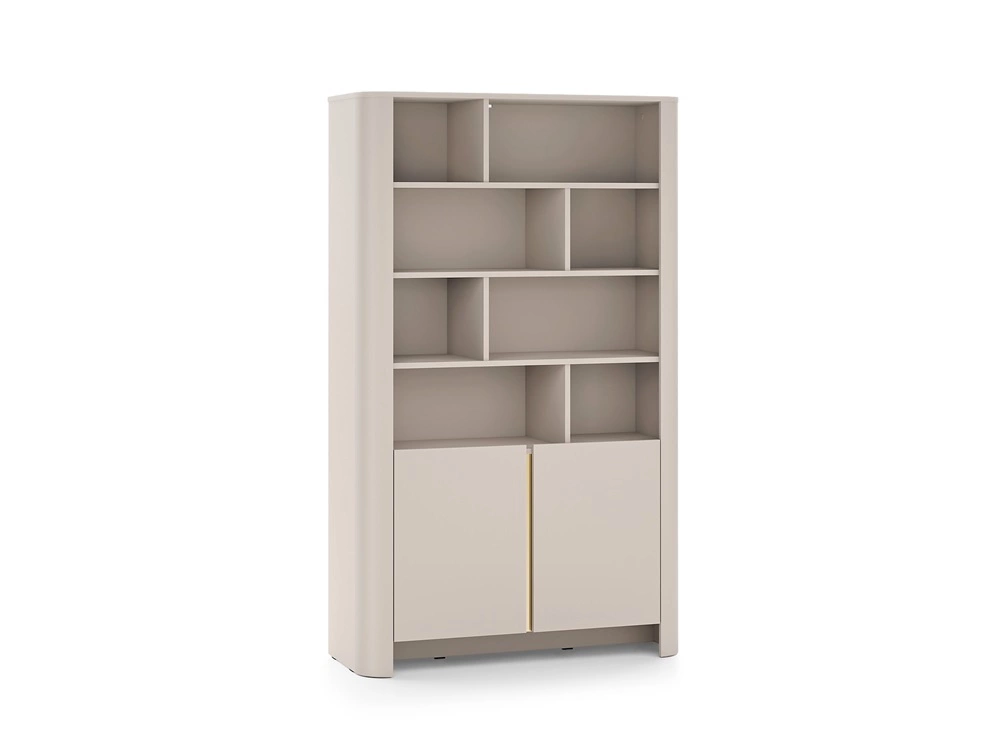 Das Bücherregal für das Wohnzimmer besteht aus offenen Regalen und 2 Türen. Das Raumbuchregal garantiert komfortable und problemlose Nutzung und Langlebigkeit des gesamten Möbelstücks für viele Jahre der Nutzung. Modischer Kaschmir-Ton den Weg in modische Umgebungen finden wird, wodurch die die Bücherregale aus der Bari-Kollektion eignen sich perfekt als Wohnzimmerregal, Büroregal oder Bücherregal für das Wohnzimmer.