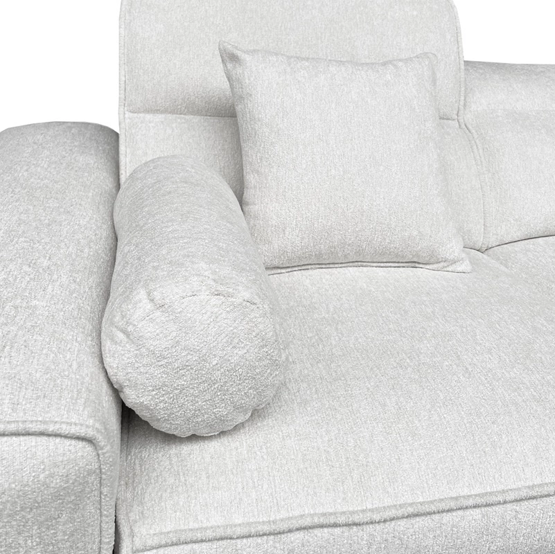 Die Extras dieses Möbels, die jeder Benutzer zu schätzen weiß, sind die Bettzeugbehälter, die verstellbaren Kopfstützen, die breiten Armlehnen und die Zierkissen in verschiedenen Formen.