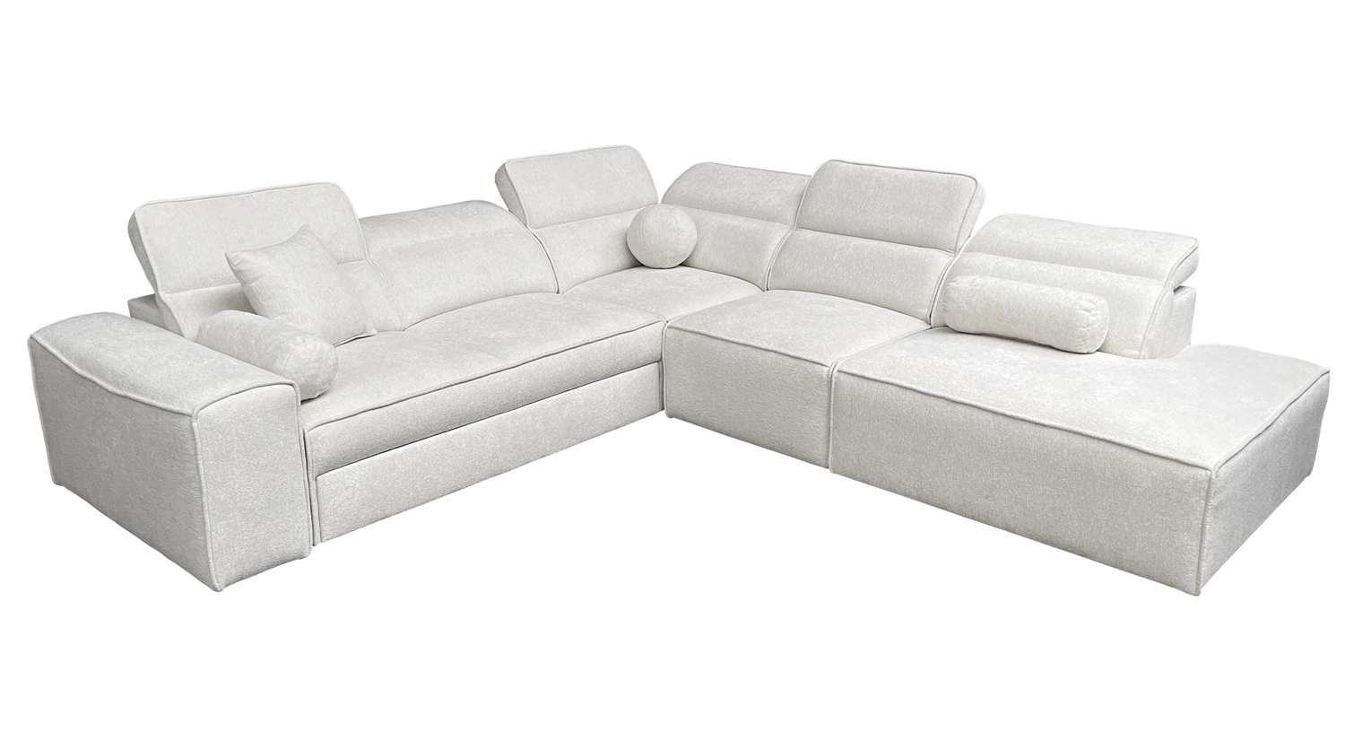 Die Extras dieses Möbels, die jeder Benutzer zu schätzen weiß, sind die Bettzeugbehälter, die verstellbaren Kopfstützen, die breiten Armlehnen und die Zierkissen in verschiedenen Formen.