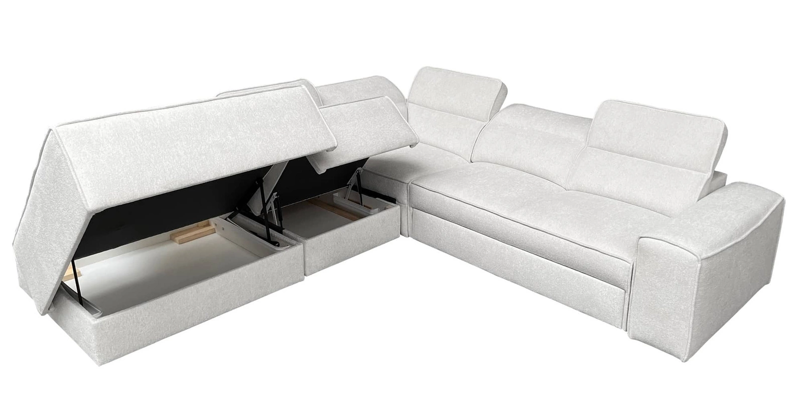 Die Extras dieses Möbels, die jeder Benutzer zu schätzen weiß, sind die Bettzeugbehälter, die verstellbaren Kopfstützen, die breiten Armlehnen und die Zierkissen in verschiedenen Formen.
