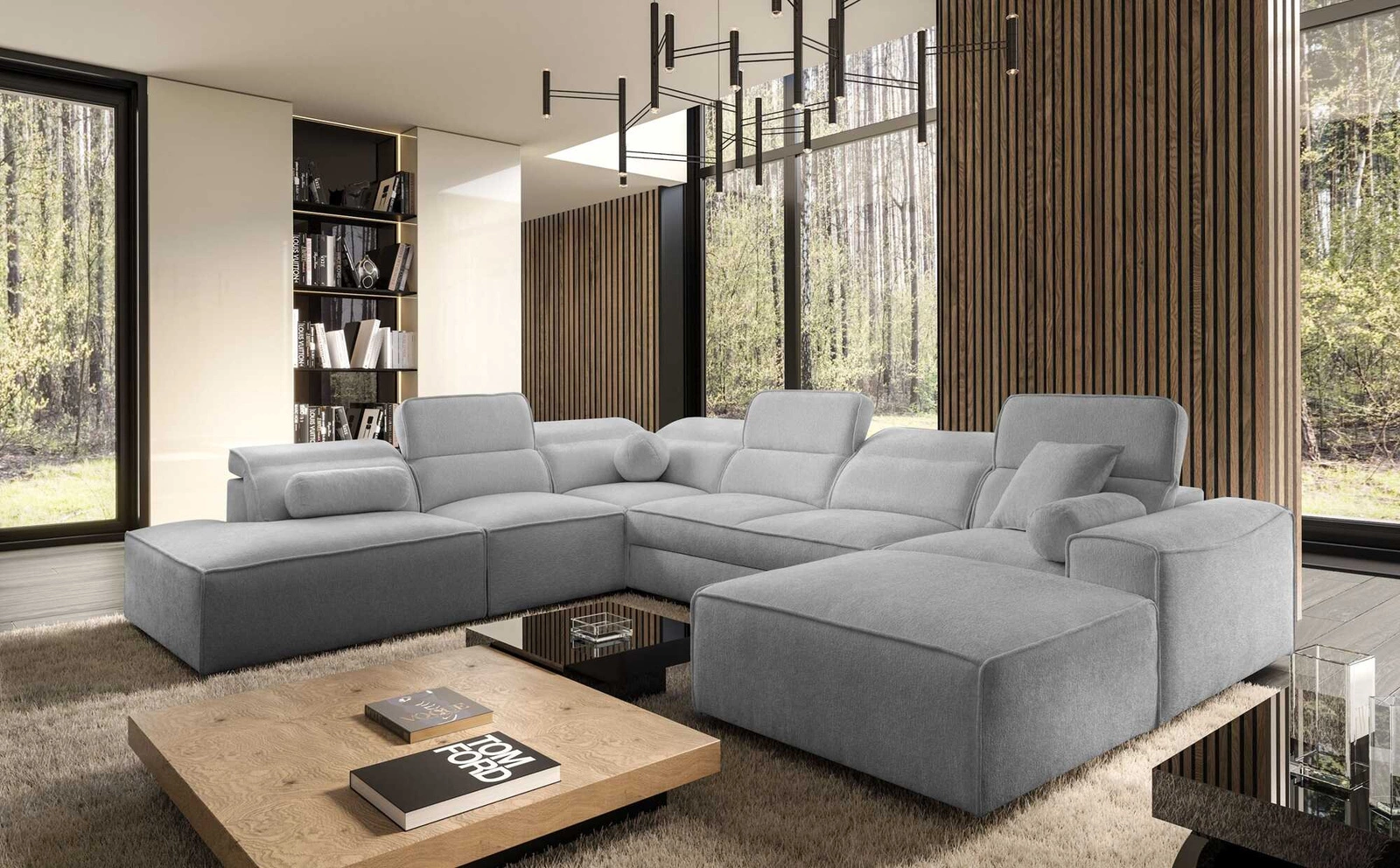 Ecksofa mit Schlaffunktion Viano X hellgrau rechts Design Ecksofa für Wohnzimmer im modernen Stil verstellbare Kopfstützen