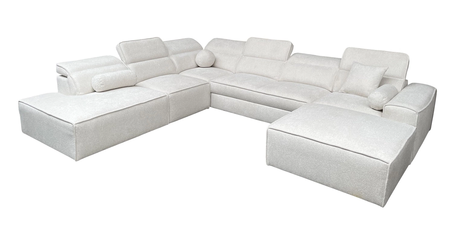 Die Abmessungen der Möbel ermöglichen raumplanung in einem geräumigen Wohnzimmer oder Sitzungssaal. Breite der Ecke 343 cm, höhe 91 cm und Tiefe 288 cm. Die Liegefläche der Eckeinheit beträgt 127x268 cm. Die Sitzhöhe des Möbels beträgt 42 cm und die Höhe der Rückenlehne beträgt 56 cm. Gewellte Federn und T30-Polyurethanschaum ist das Material, aus dem der Sitz der Ecke hergestellt ist. Feste Rückenlehne mit verstellbaren Kopfstützen ermöglicht eine einfache anpassung sie können die Neigung der Kopfstützen nach Ihren Wünschen einstellen und so für eine bequeme Erholung nach einem langen Tag sorgen, die Sie, Ihre Lieben und auch Ihre Gäste, die auf diesem einzigartigen Ecksofa Platz nehmen, zu schätzen wissen werden.