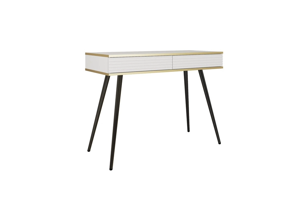 Konsole mit Schubladen Luxury weiß eleganter Schminktisch mit geriffelten Fronten hohen schwarzen Beinen Körper mit Gold trim gekrönt