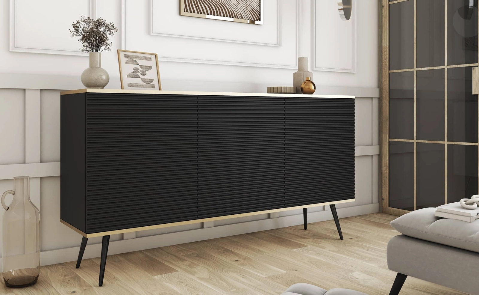 Die 160 cm lange Luxuskommode in Schwarz ist ein modernes Möbelstück, das Ihr Wohnzimmer stilvoll vervollständigen wird.