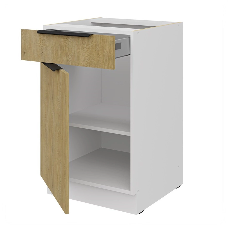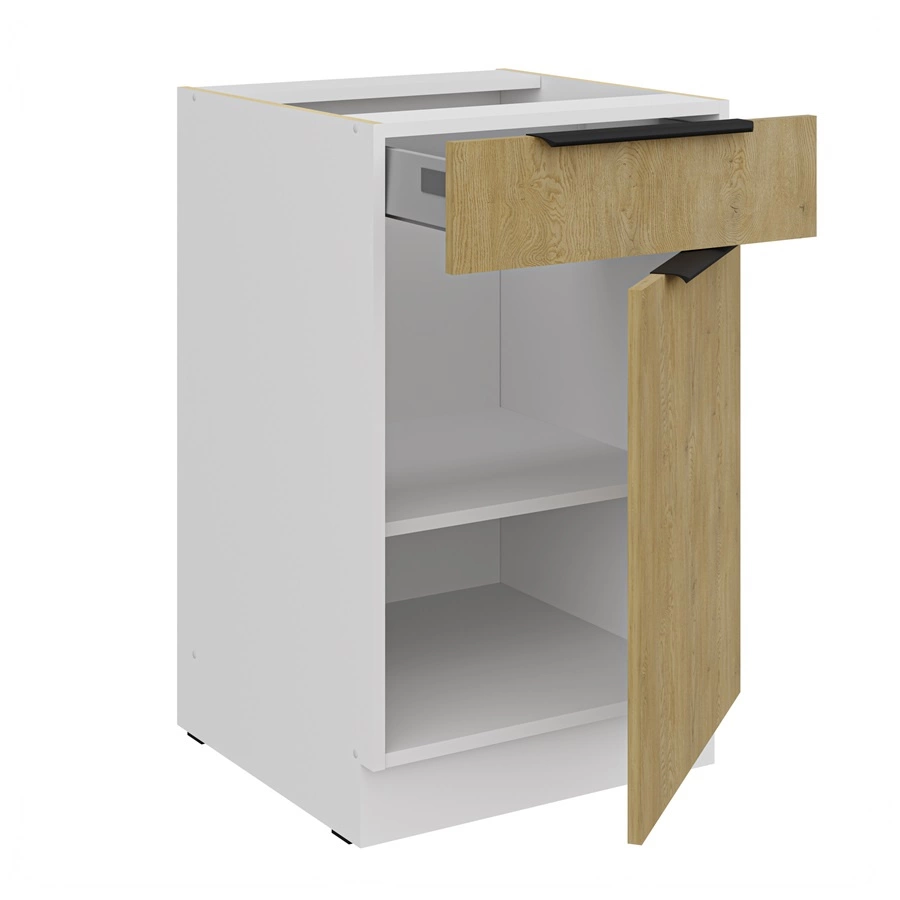 Küchenschrank mit Schublade und Regal Cremona 50 D 1F 1S BB Metallkantengriffe feuchtigkeits- und beschädigungsbeständiger Schrank