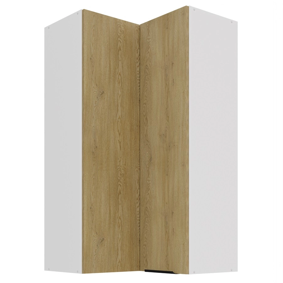 Der Eckhängeschrank Cremona in Weiß / Eiche Cremona gehört zur Kategorie der modularen Küchenmöbel, aus denen sich jedes gewünschte Set zusammenstellen lässt.