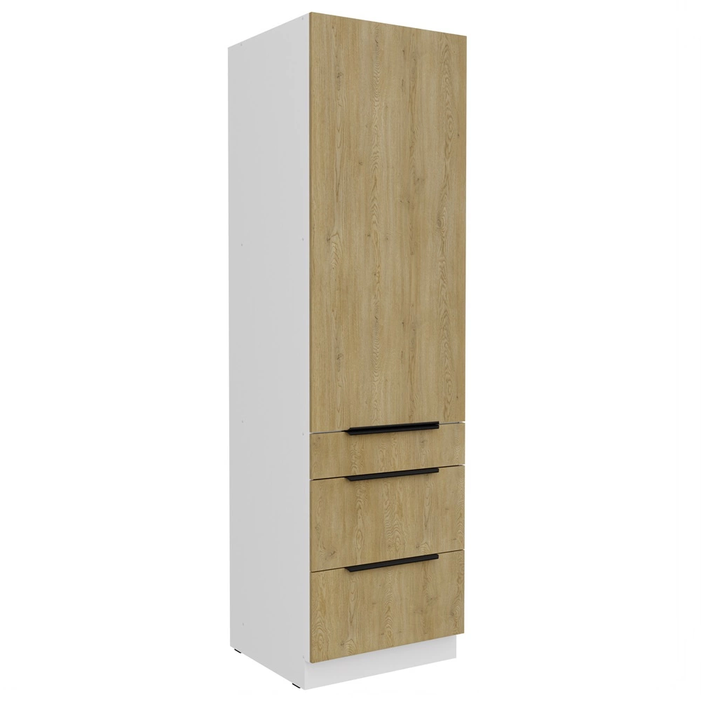 Küchenhochschrank Cremona 60 DKS-210 3S 1F Küchenschrank mit Schubladen feuchtigkeits- und beschädigungsbeständige Metallkantengriffe
